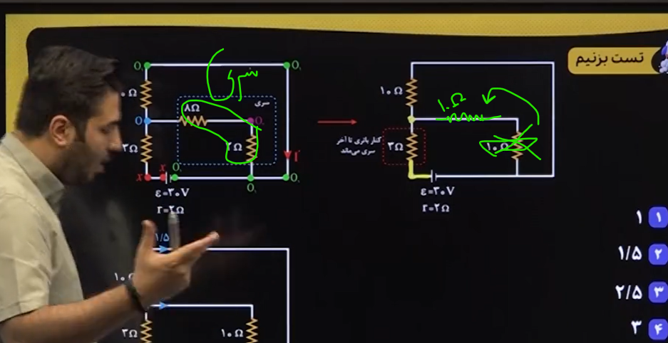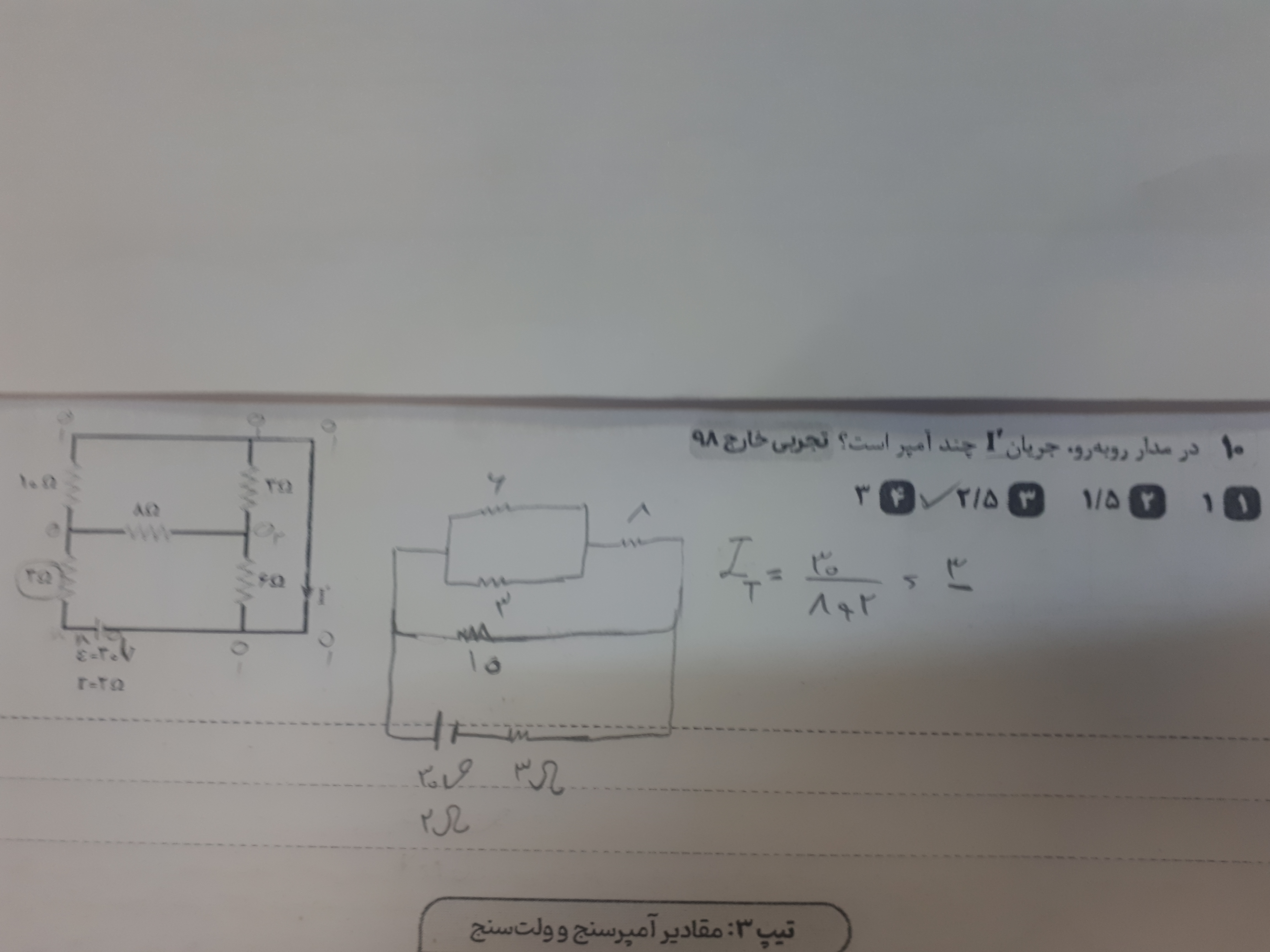 @سید محمد متین رشادی بله حواسم نبود منظورم همون 10 اهمیه رو ب روی 3 اهمی بود ی دستش تو دست قطب منفی باتری