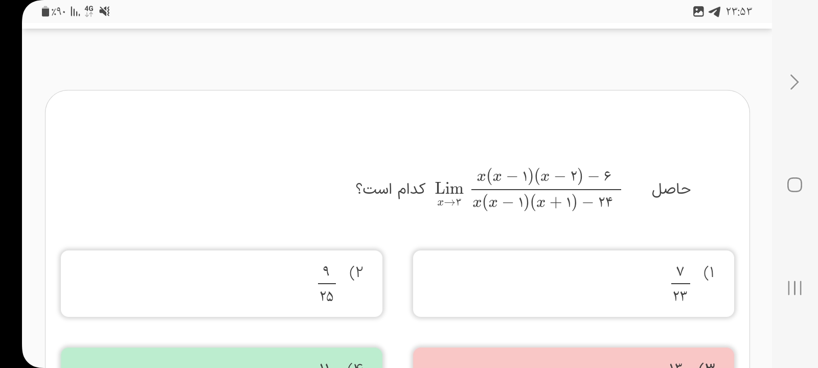 سلام وقتتون بخیر خدا قوت✋🏻🌺 ببخشید تمرین سوم همین یادبگیریم رو میشه یه توضیح بدید اون 4بتوانx منهای یک به توان 2 که توی صورت کسر هس توی پاسخنامه از کجا اومد؟ ممنون میشم پاسخ بدید با تشکر🌹🙏🏻🌹