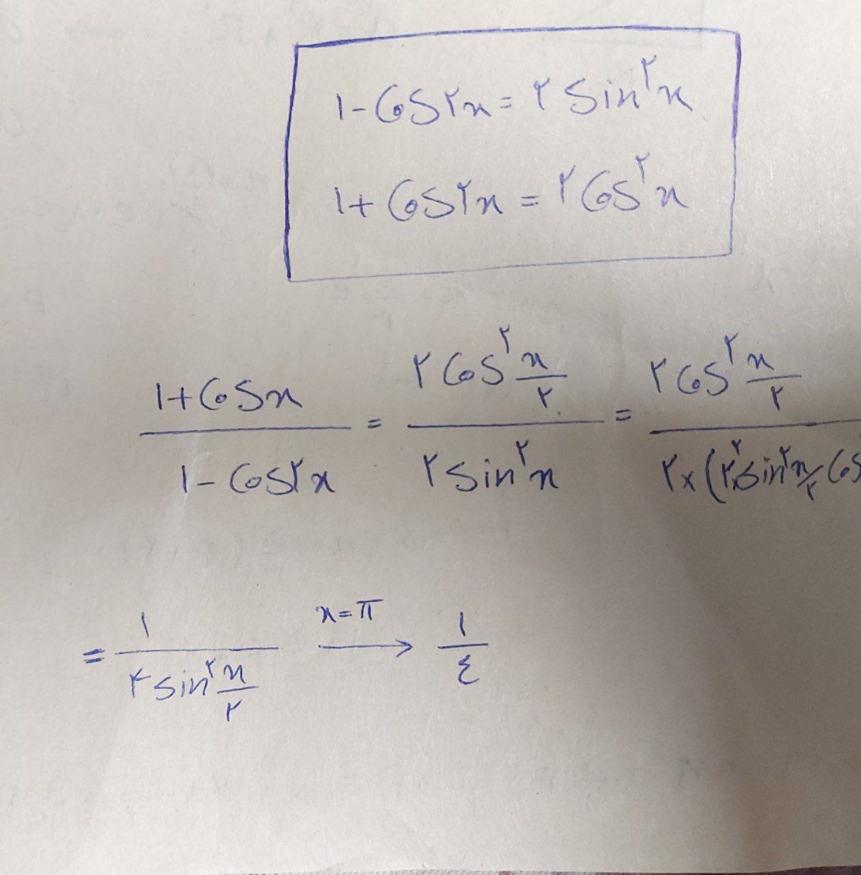 سلام رفیق برا منم سوال بود اما خب مثبت یک چهارم میشه چون کسینوس ۱۸۰ میشه منفی یک با منفی پشتش مثبت میشه