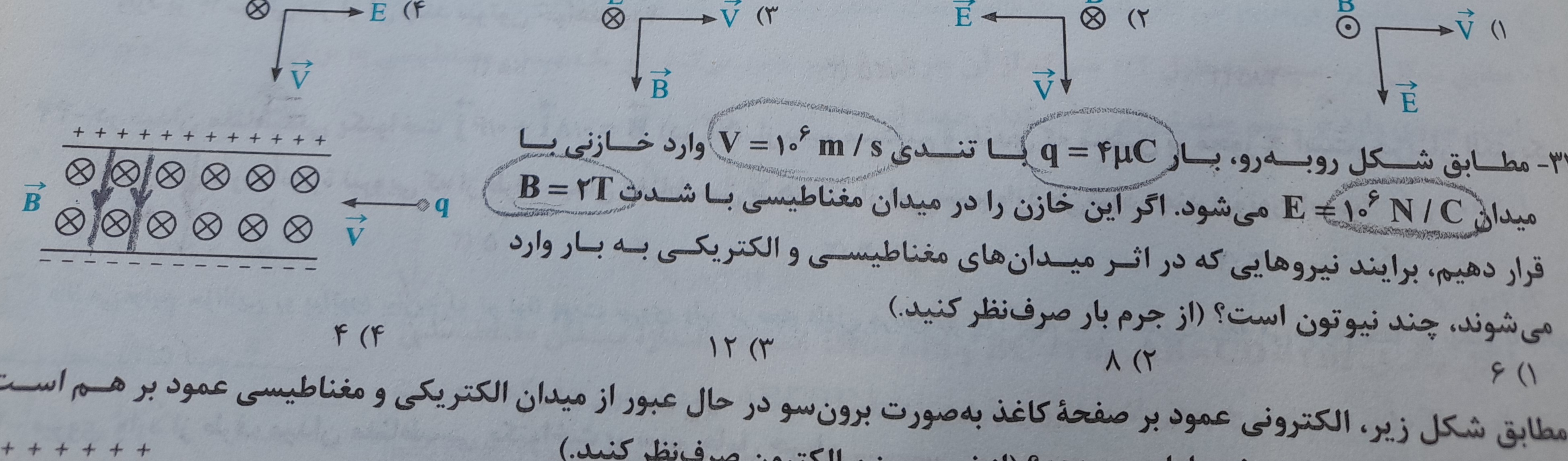 سلاممم :)))) ببخشید میدان مغناطیسی درون سو است و V به سمت چپ و *** نیرو رو به پایین *** و در حالت بعدی V به سمت راست میدان الکتریکی به سمت پایین و *** نیرو میشه برون سو *** اما تو پاسخنامه نوشته دوتا رو به پایین هستند چراااا؟ 🥲