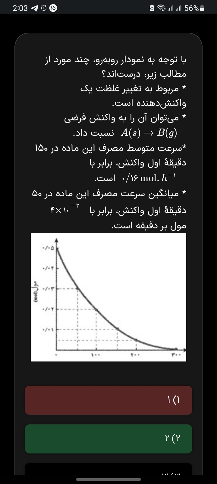 سلام روز بخیر در گزینه اول مگه ما نگفتیم غلظت در جامد ها ثابته پس چرا گزینه اول درست است؟