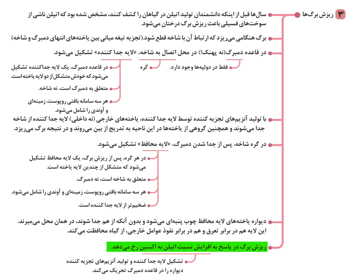 @پیام نصیری سلام دقت کنید وقتی استاد نقش های سیتوکینین رو نوشتن، براش نگفتن جلوگیری از ریزش برگ! باید به این کلید واژه ها دقت کنید در ظاهر بدون توجه به گفته های کتاب درست به نظر میاد ولی در واقع ریزش برگ از نظر کتاب و کنکور برهم کنش اتیلن و اکسینه