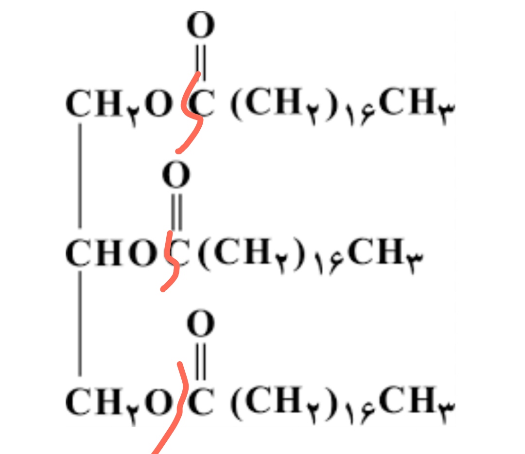 ببخشید این چربی، چربی ذخیره شده در کوهان شتر هست و اگه بخوایم روغن زیتون رو به همین شکل نمایش بدیم شکلش چطوری میشود؟ اخه من هیچجوره نمیتونه ترکیبی بسازم که ۱۰۴ تا هیدروژن با ۵۷ تا کربن داشته باشه ینی فرمول مولکولیشو بلدم ولی فرمول ساختاریشو نمیدونم اگه ممکنه توضیعش بدین ممنون