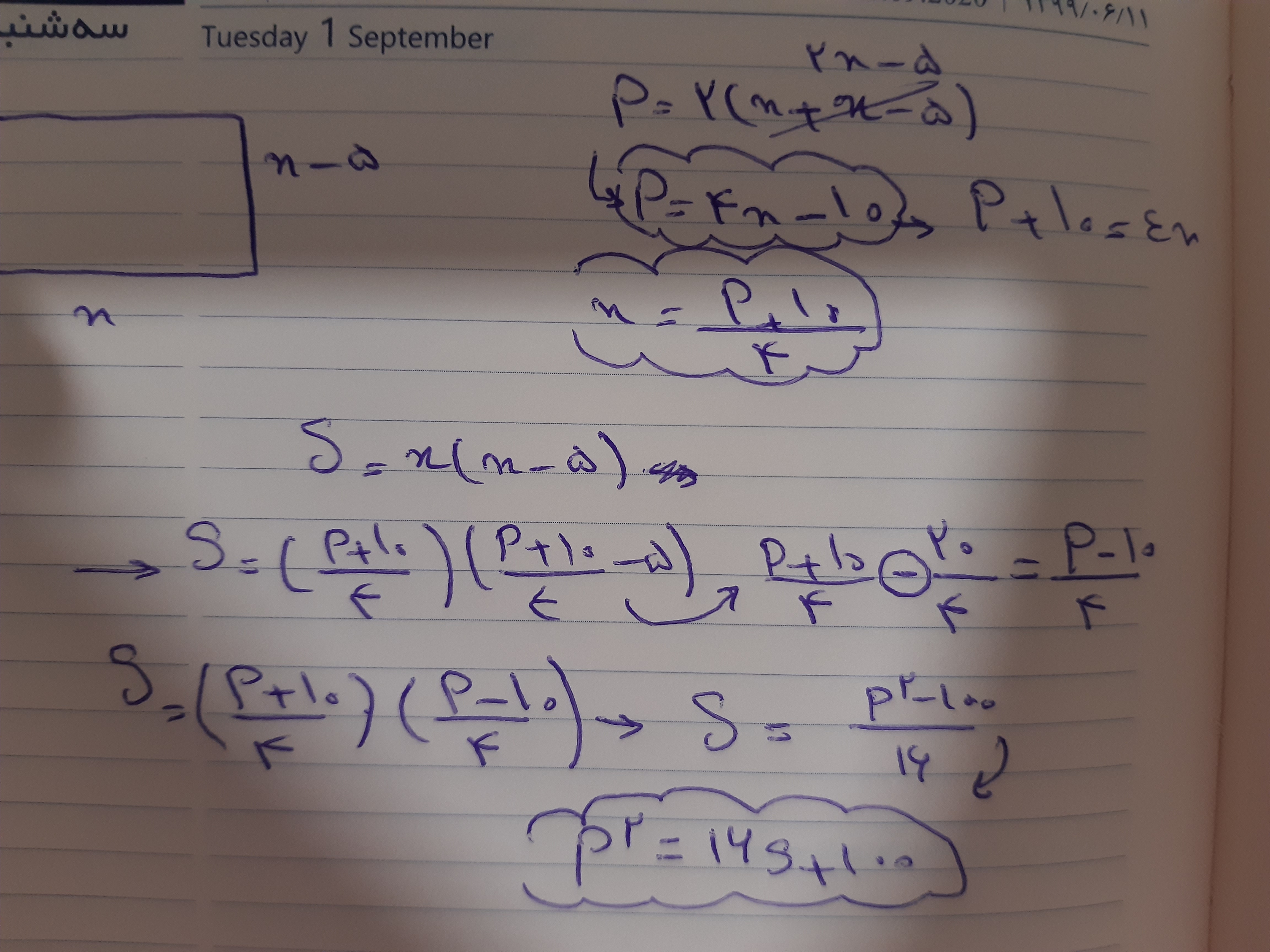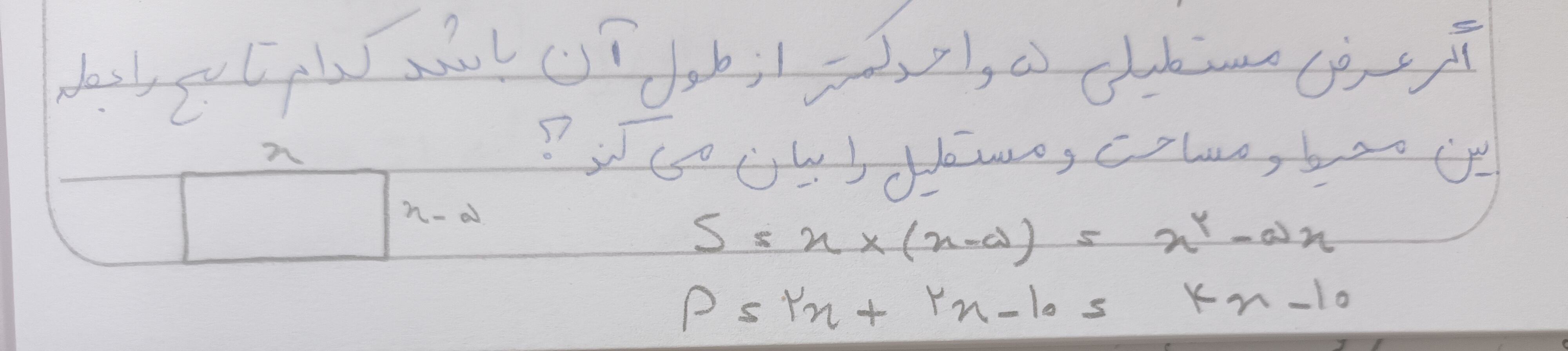 فرقی نداشت که بگیم طول=x و عرض بشه x-5؟