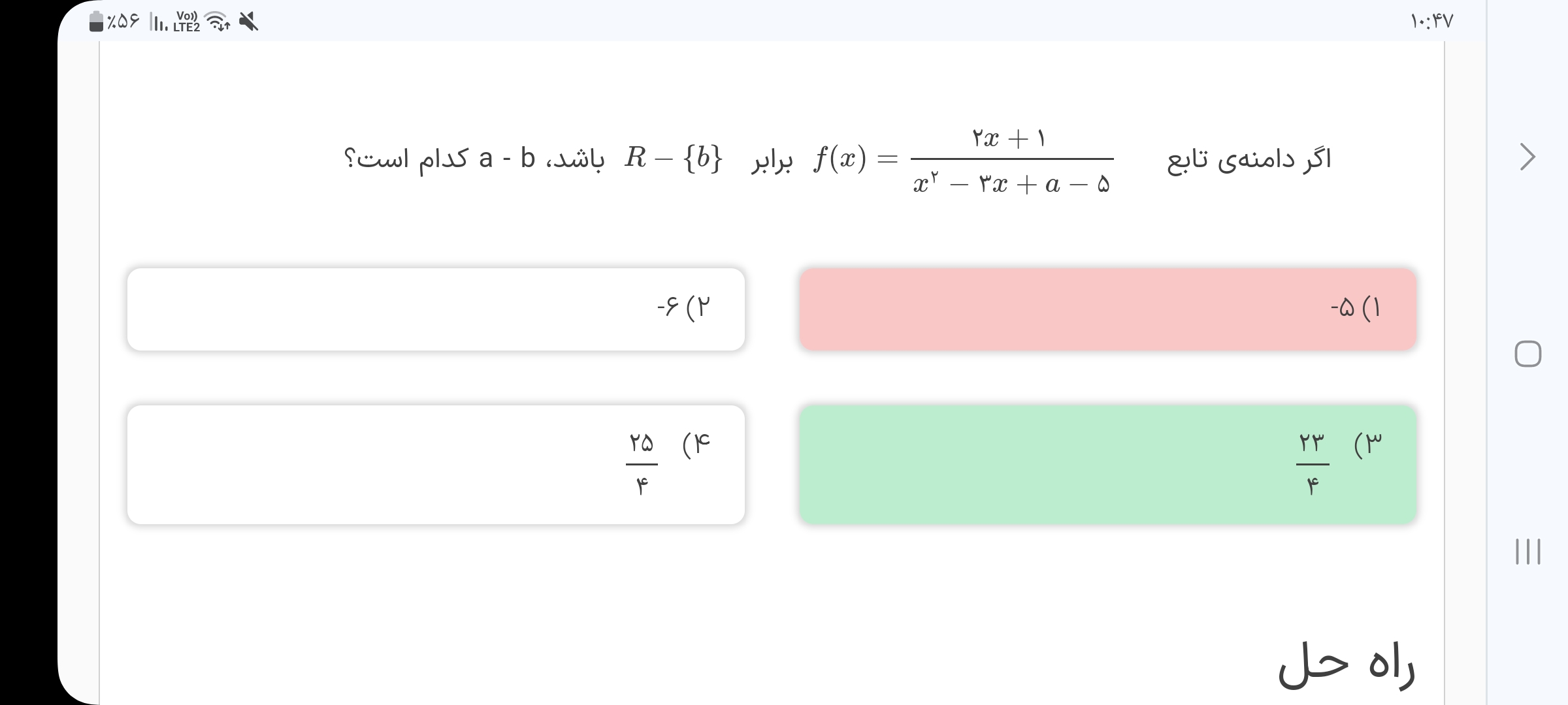 سلام ببخشید تو این سوال ما میتونیم مخرج رو هم به شکل مربع کامل در نظر بگیریم و در نهایت 3 تا جواب بدست بیاد واسه a