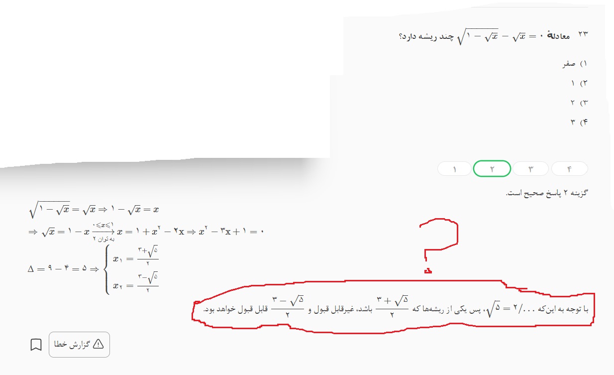 میشه یکی بگه چرا یکی از جوابها غیر قابل قبول هست؟ سوال آزمون امروز بود