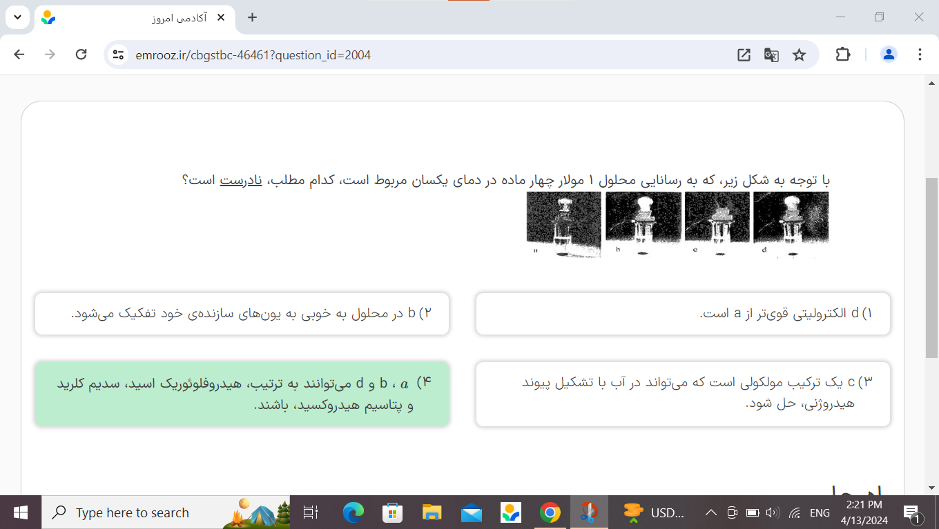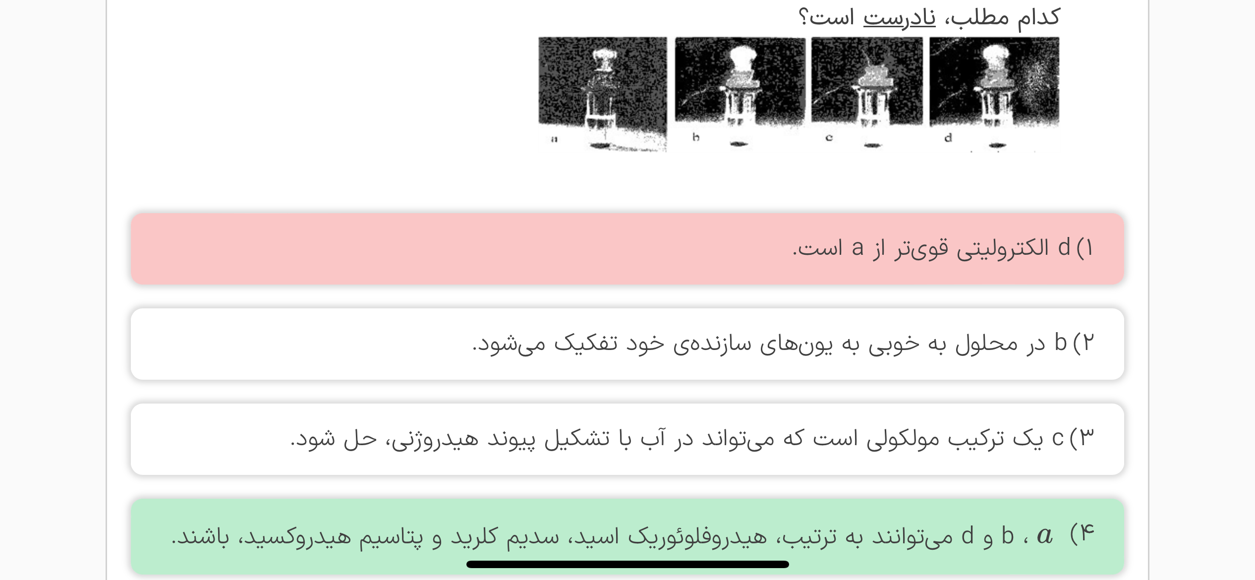 مورد ب ، مگه نگفتیم هر ماده ای که در آب حل بشه پس چرا اینجا جمله ب رو درست میگیریم؟؟!