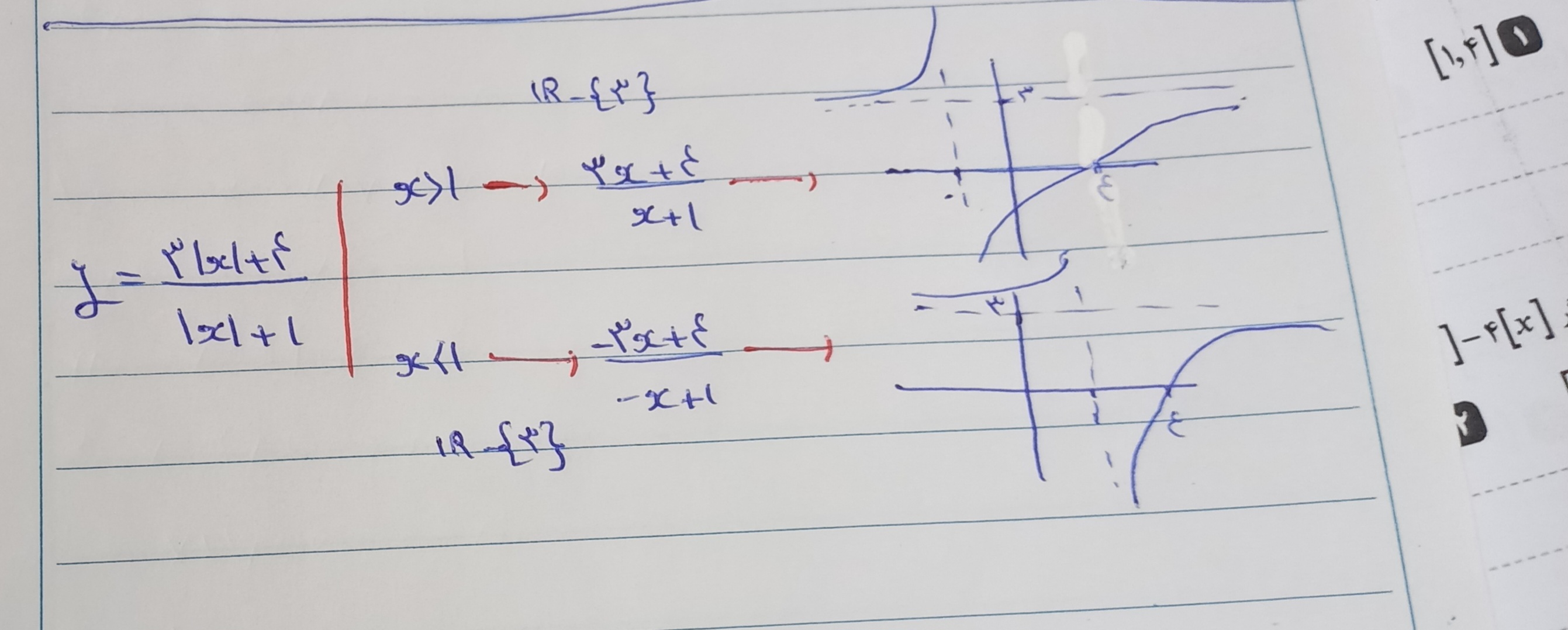 @مبینا قنبری نموداری که واسه اون ضابطه ای که با دامنه ی کوچکتر از یک هستش رسم کردین اشتباهه و باید نسب به محور y قرینه بشه شکل رو رسم کنید با توجه به شکل برد تابع از عدد 3 که مجانب افقی هستش شروع میشه تا نقطه y=4 که همدیگه رو قطع میکنن که چون عدد 3 مجانب افقیه و هر دو تابع در اون نقطه تعریف نشده ان بازه اش میشه باز!! ولی نقطه 4 که هر دو تابع در اونجا مقدار دارن بازه اش بسته میشه!!