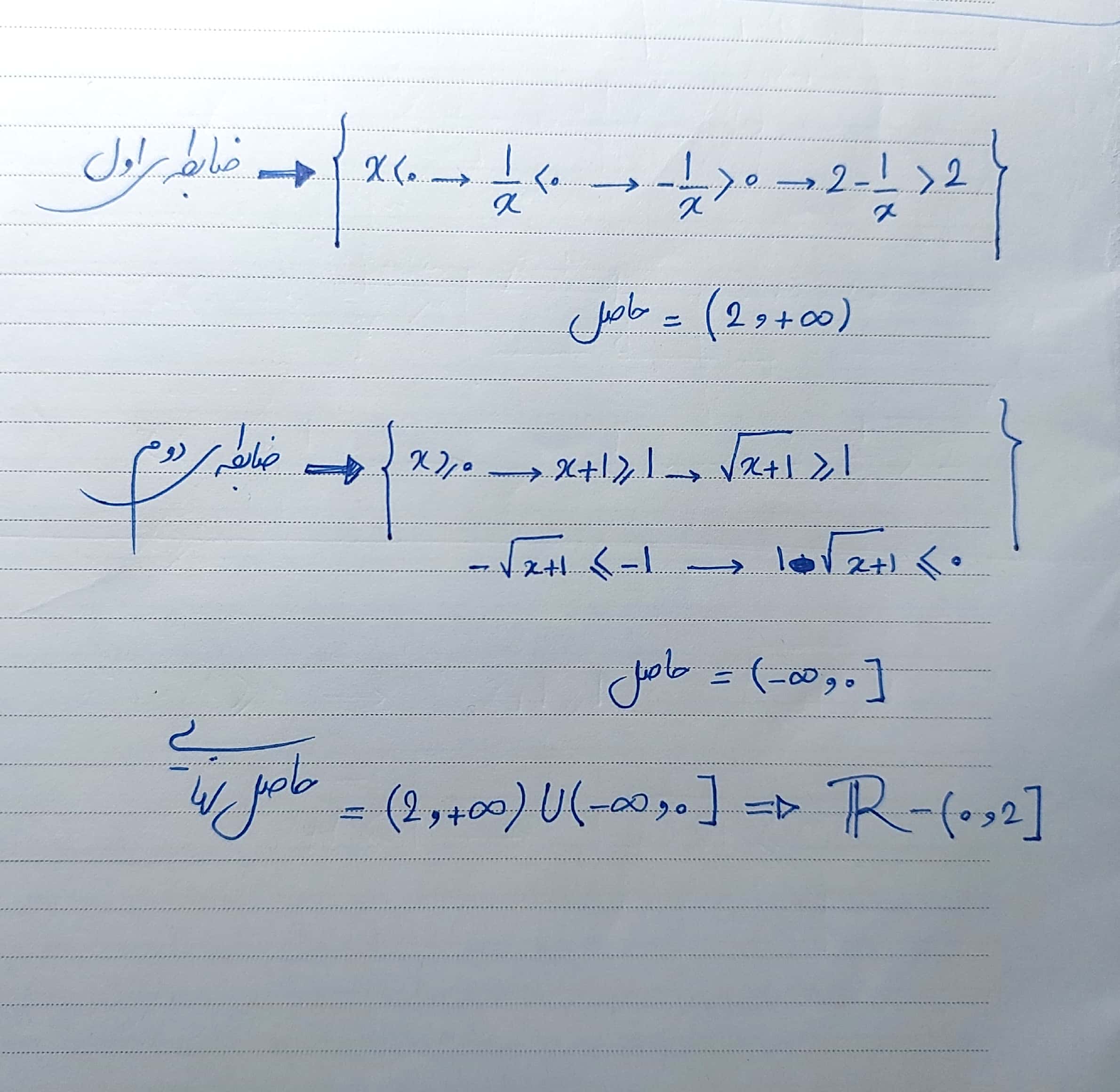@مهدی مکبر سلام بله حتما :) در واقع از خواص نامعادله استفاده می‌کنیم و از دامنه ای ک بمون داده سعی می‌کنیم به ضابطه ی تابع اصلی برسیم سعی کردم همه مراحل رو بنویسم ولی اگر جاییش رو متوجه نشدی بم بگو تا دوباره بگم :)