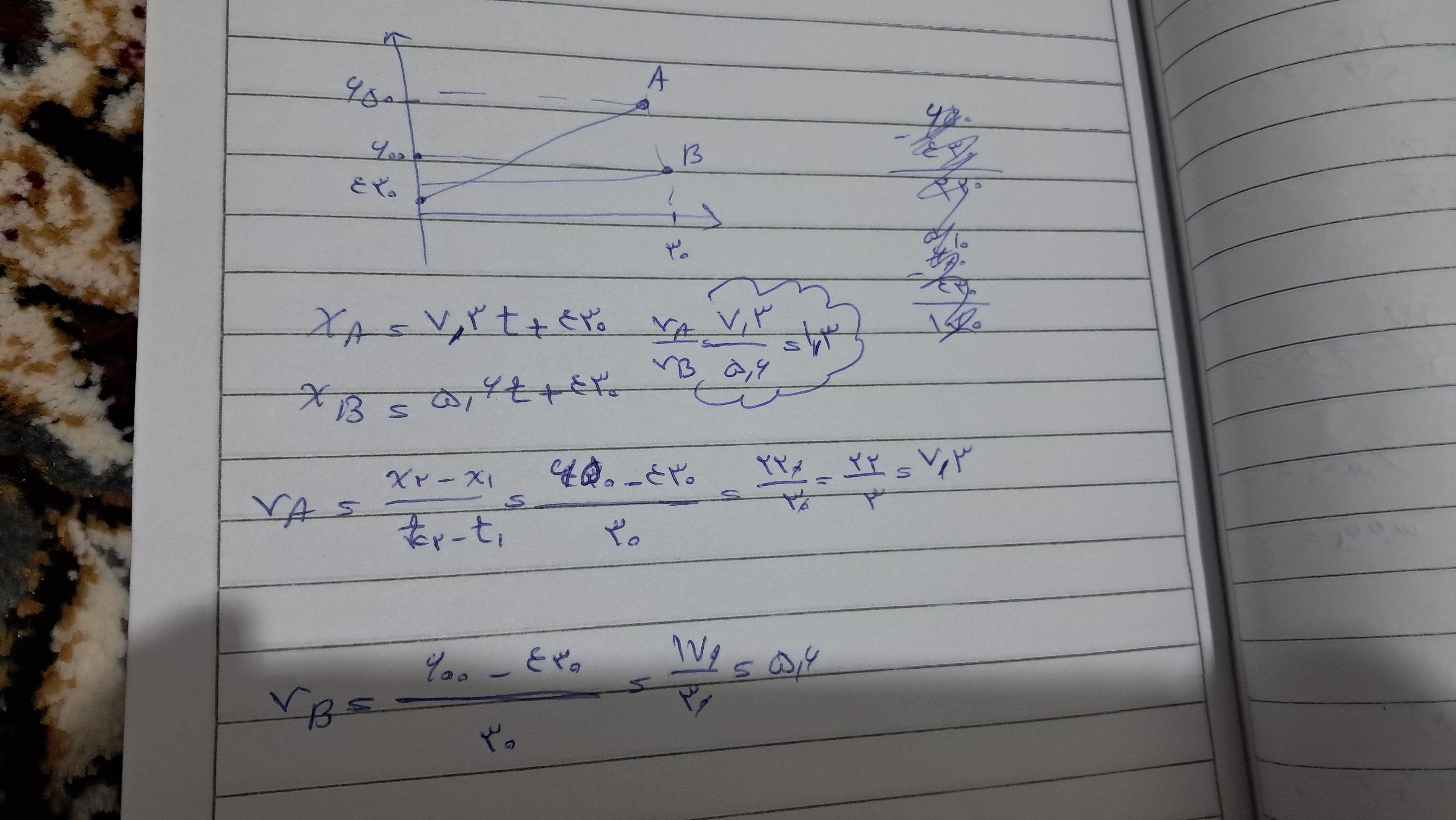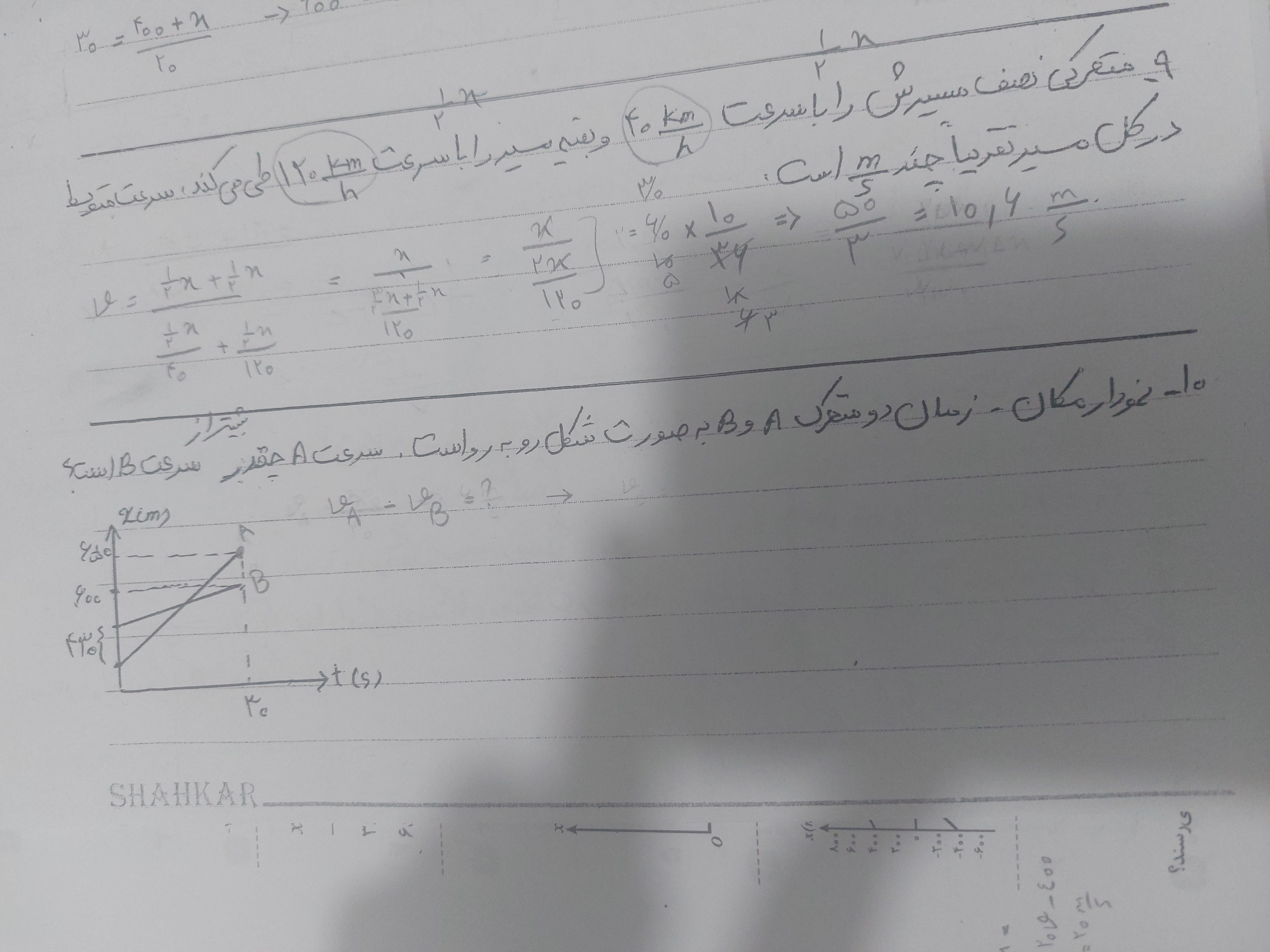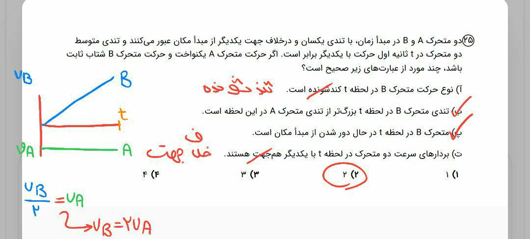 سلام دقیق نمیدونم درست حل کردم یا نه چون من شروع هردومتحرک رو۴۳۰ درنظر گرفتم و سرعت های هرکدوم رو به دست آوردم و باهاشون حساب تقسیم هم کردم تا ببینم چندبرابرهمن سرعت متحرکa میشه ۱/۳بیشتر از سرعت متحرکB بازم میگم میدونم درسته ولی شک دارم😂 بازم با یکی چکش کن♥️