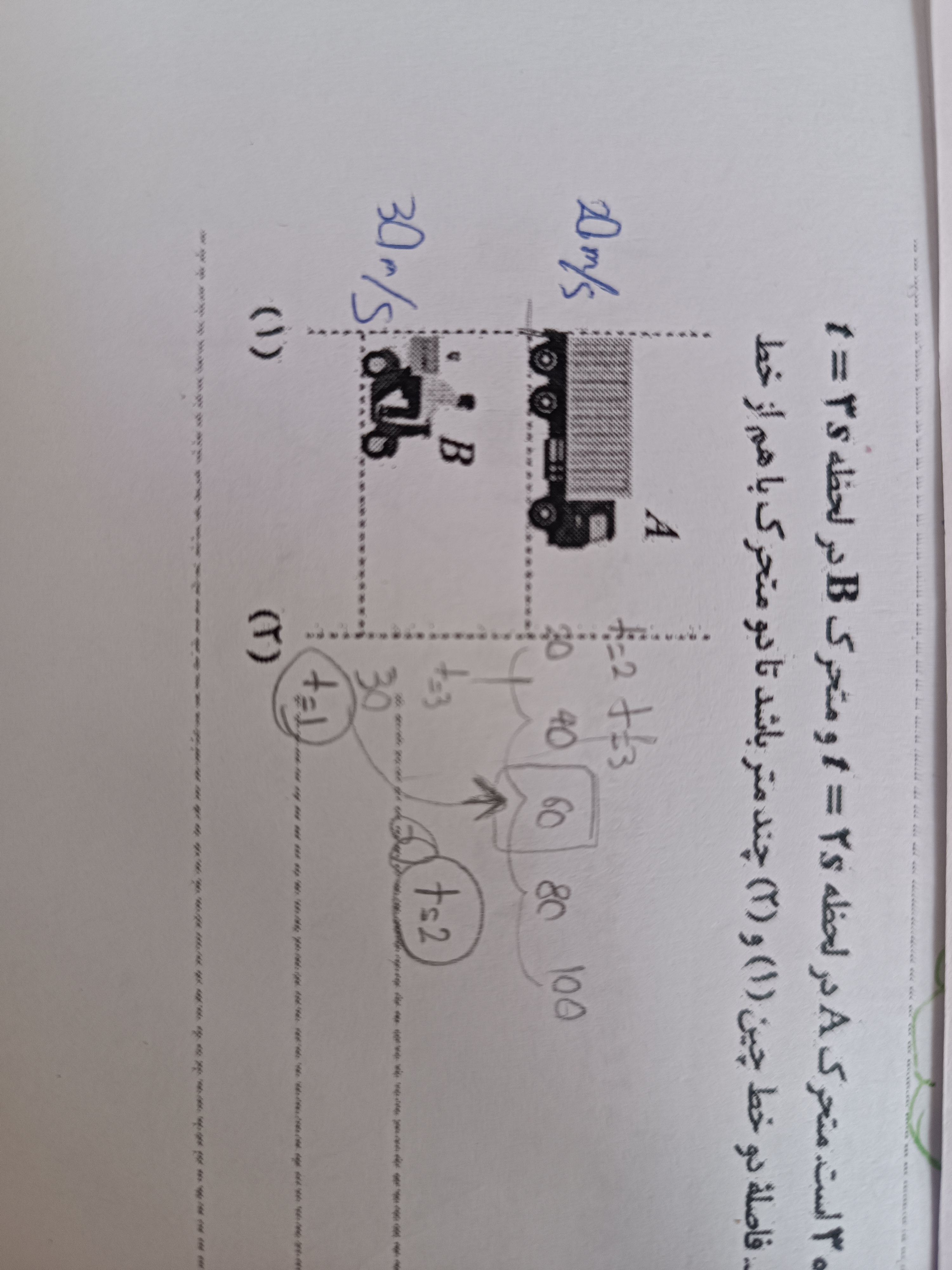 من امدم گفتم یکی شون تو هر ثانیه ۲۰ متر میره اون یکی ۳۰ متر خب حالا ک.م.م بین شون میشه ۶۰ پس فاصله باید ۶۰ باشه که باهم برسن یکی تو سه ثانیه یکی تو دو ثانیه اینم درسته؟