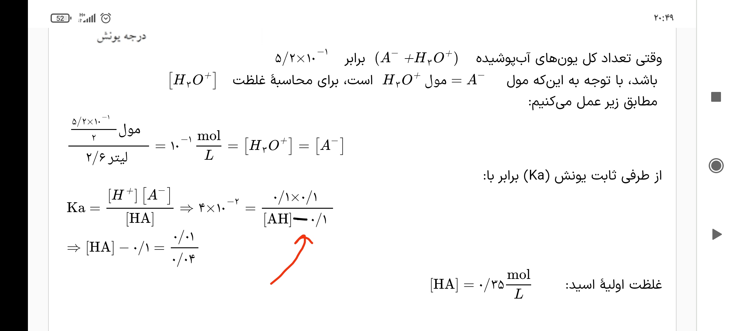 سلام بخشید در سوال ۶ تمرین چرا اینجا غلظت HA رو منهای ۰٫۱ کردیم؟