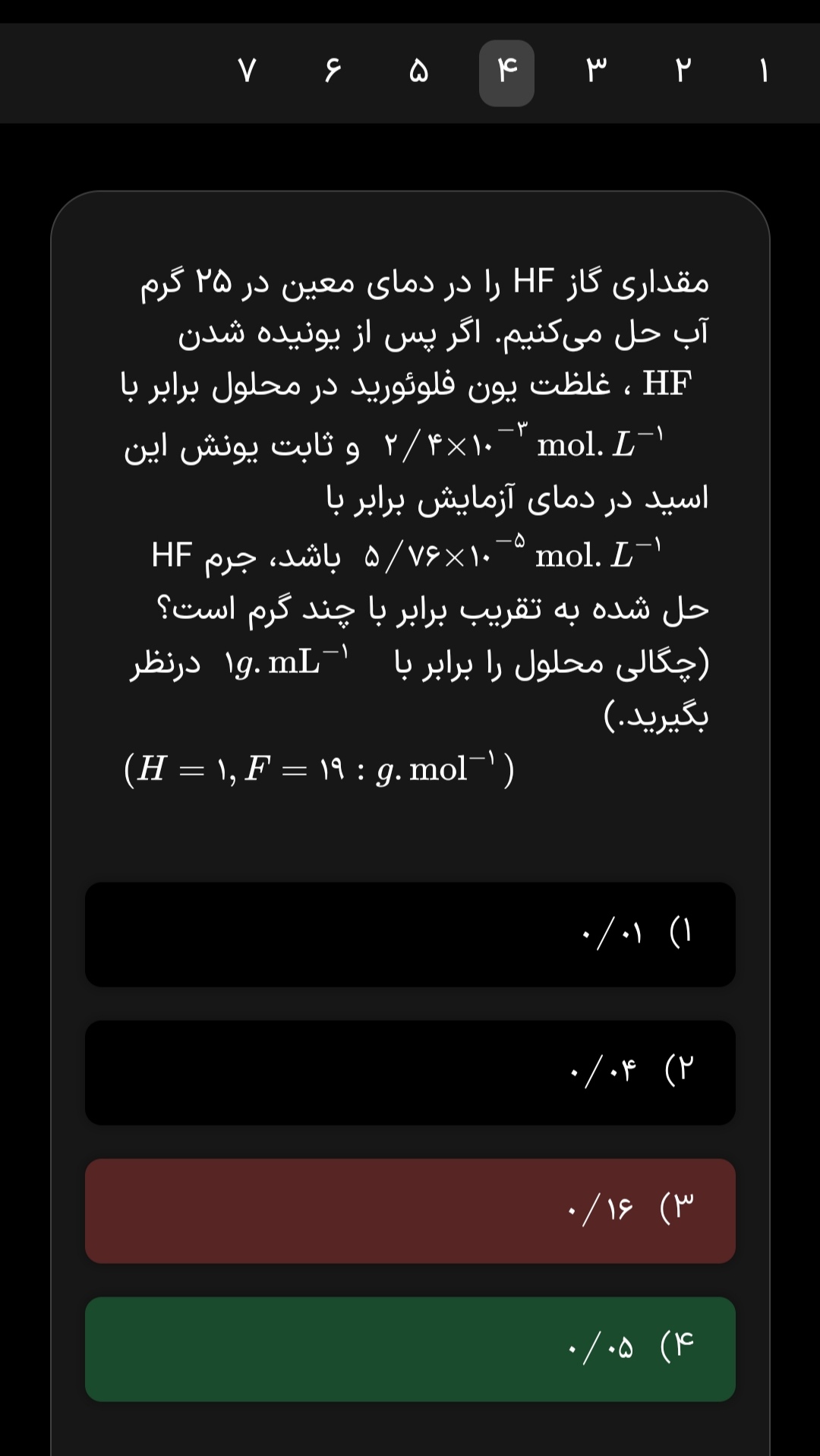 باید میدونستین طبق جدول صفحه 23، HCN ضعیف ترینه و HBr دومین اسید قویه. پس اختلافشون بیشتر از بقیه میشه..