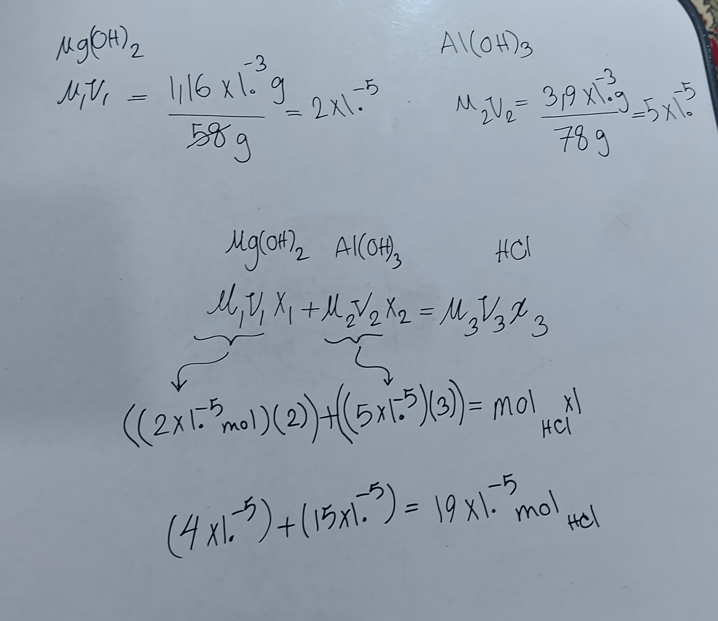 سلام میتونیم مول منیزیم هیدروکسید و آلومینیوم هیدروکسید رو حساب کنیم بعد فرمول واکنش خنثی شدن رو بنویسیم؟