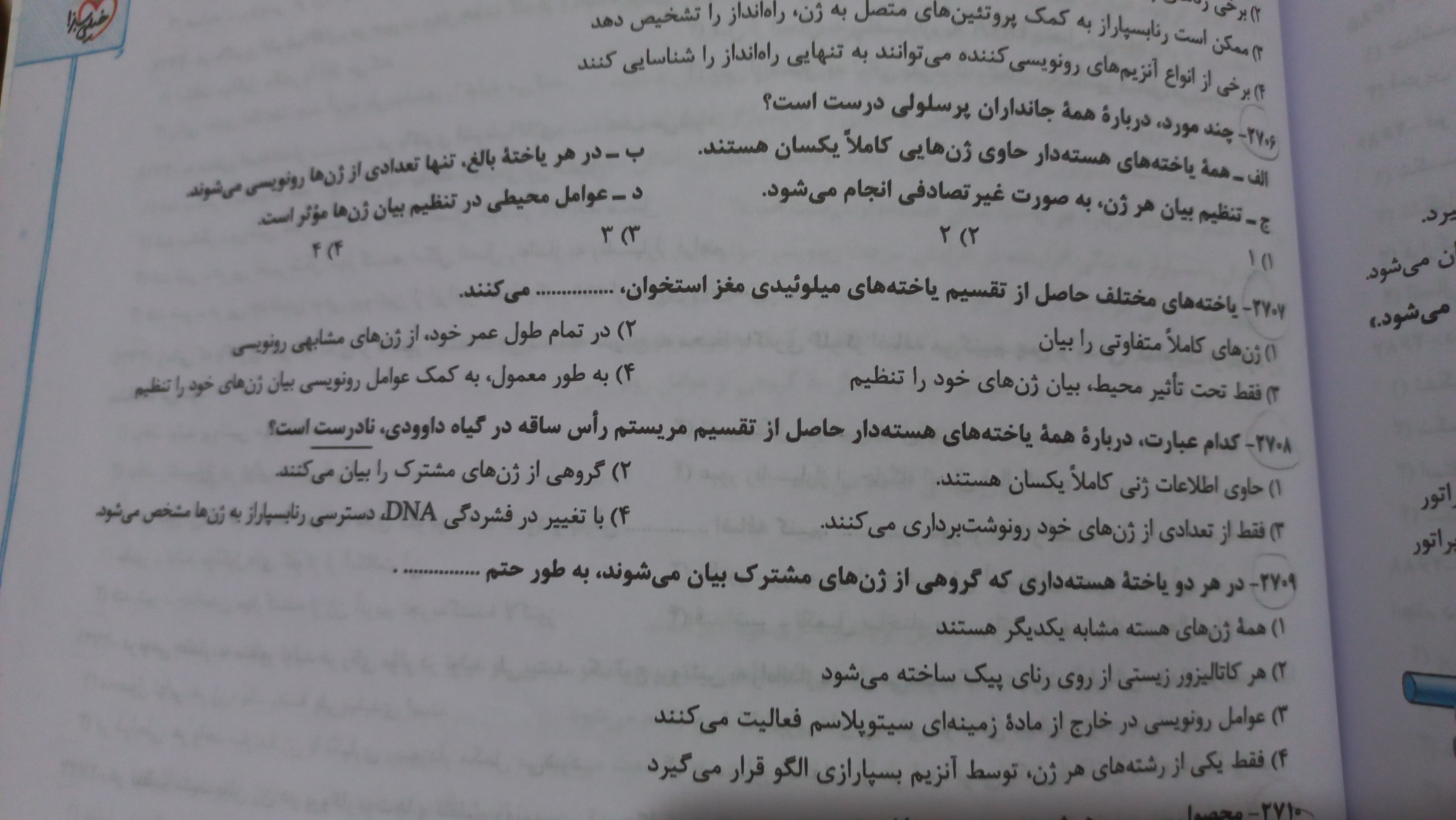 برای گزینه 3نمیتونیم میتوکندری وپلاست هارو در نظر بگیریم؟!