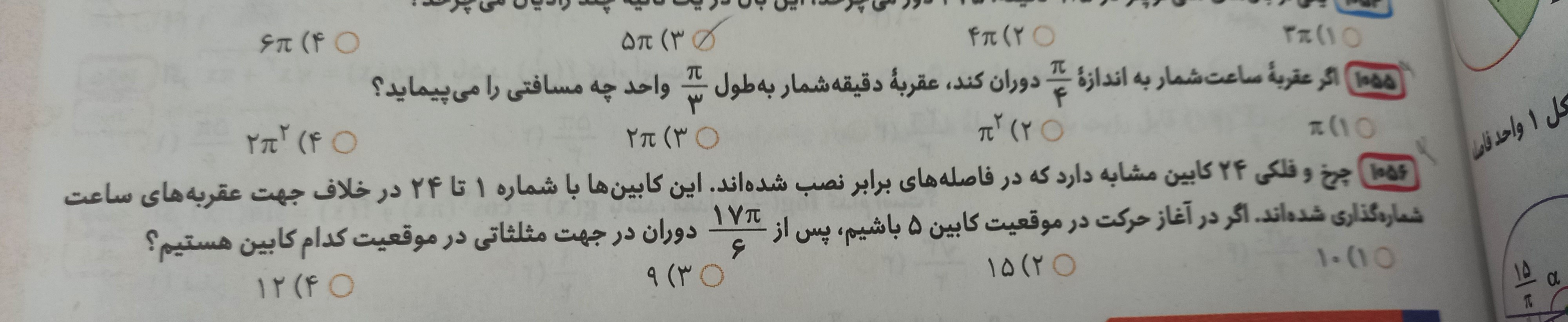 سلام فکر کنم چی یادگرفتیم سوال اولی گزینه هاش اشتباهه چون رادیان 100 درجه میشه 5/9π