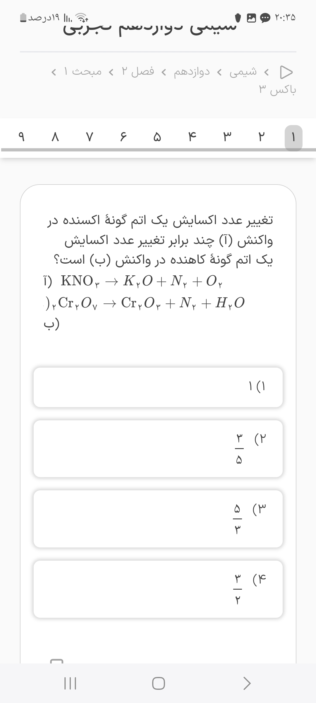 سلام سوال نسبت دو تا تغییر عدد اکسایش به هم رو خواسته که هر دو اعداد صحیح هستن اما اگه به هم تقسیم شن، ممکنه اعشاری شن