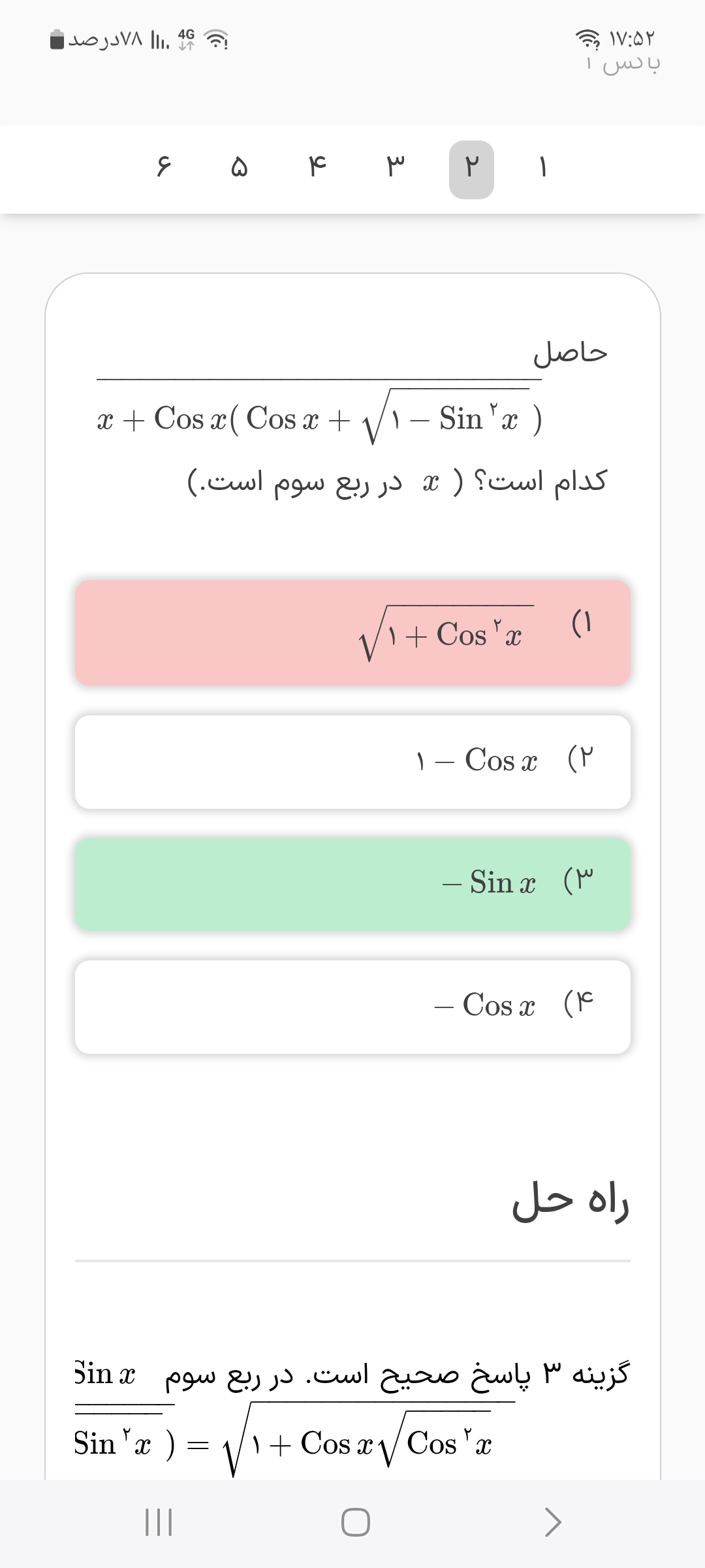 سلام وقت بخیر لطف میکنید روش قبلی که همون تقسیم کردن به sin یا cos حلشو توضیح بدین؟ من جوابو 1/6 میارم
