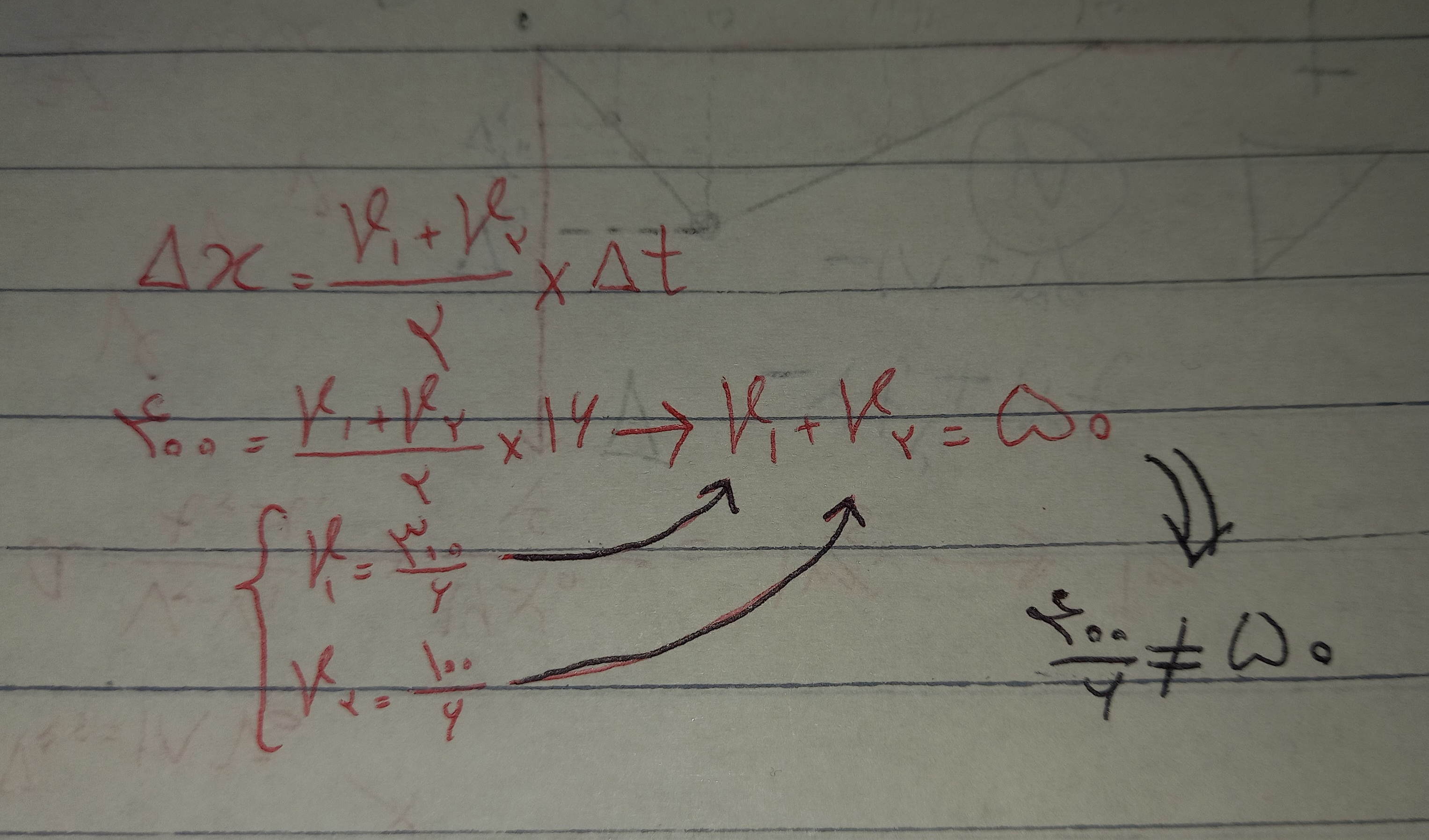 سلام من شتابو با یک روش دیگه درآوردم فقط یک جایی از این فرمولی که بالا چپ نوشتم برام سوال شد ! باید جمع v1 و v2 برابر ۵۰ بشه ولی میشه دویست سوم ! چرا ؟؟