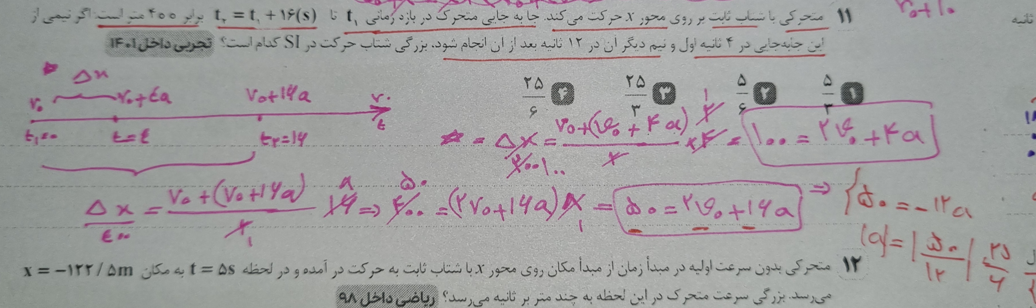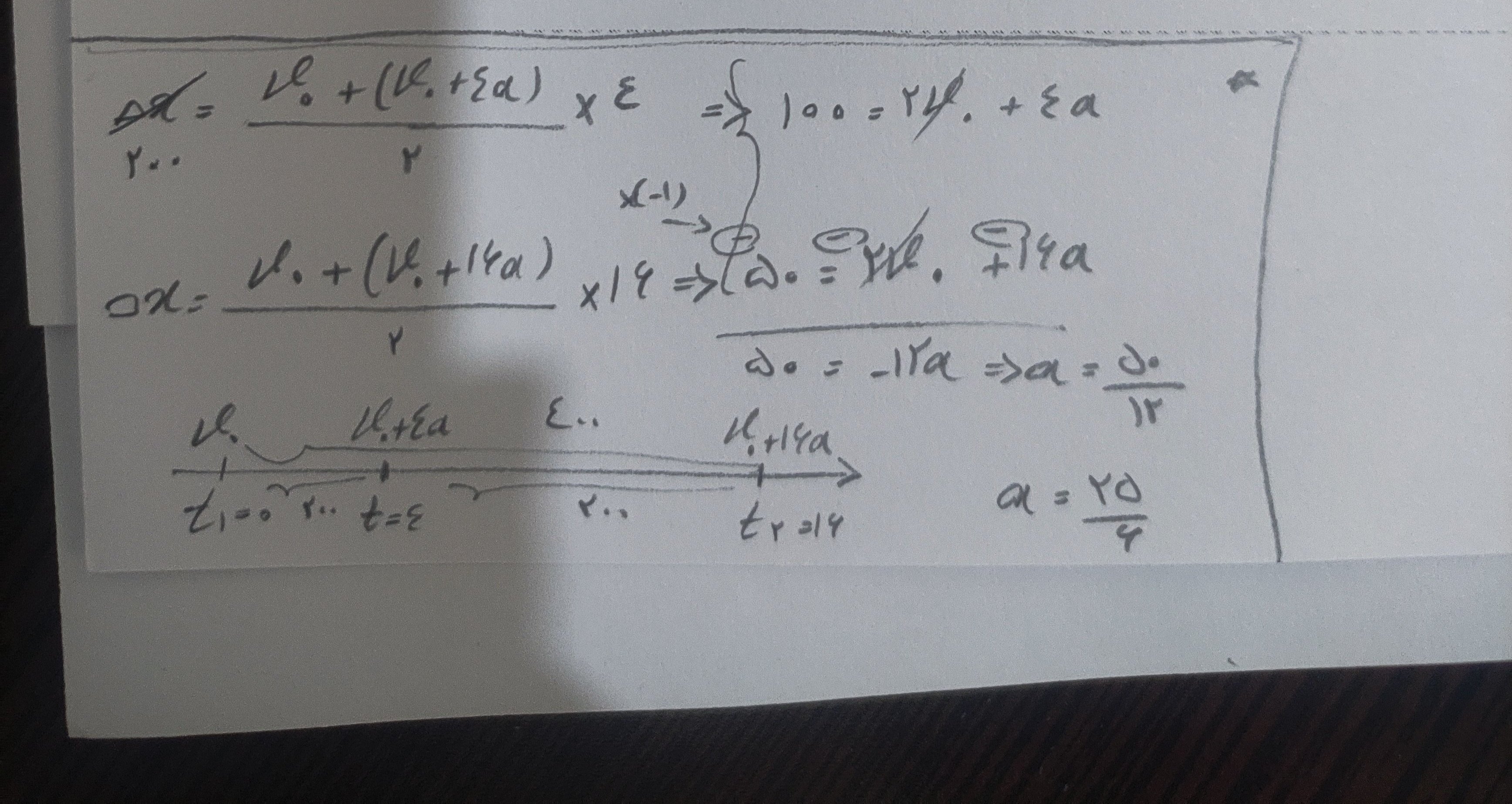 سلام.. احتمالا چون جابه‌جایی رو یکجا حساب کردی. استاد توی درسنامه گفتن اگه متحرک تغییر جهت نده ولی حرکت با شتاب ثابتِ چندمرحله‌ای باشه ، باید جابه‌جایی رو جدا جدا حساب کنی. من اینجوری حل کردم ببین👇