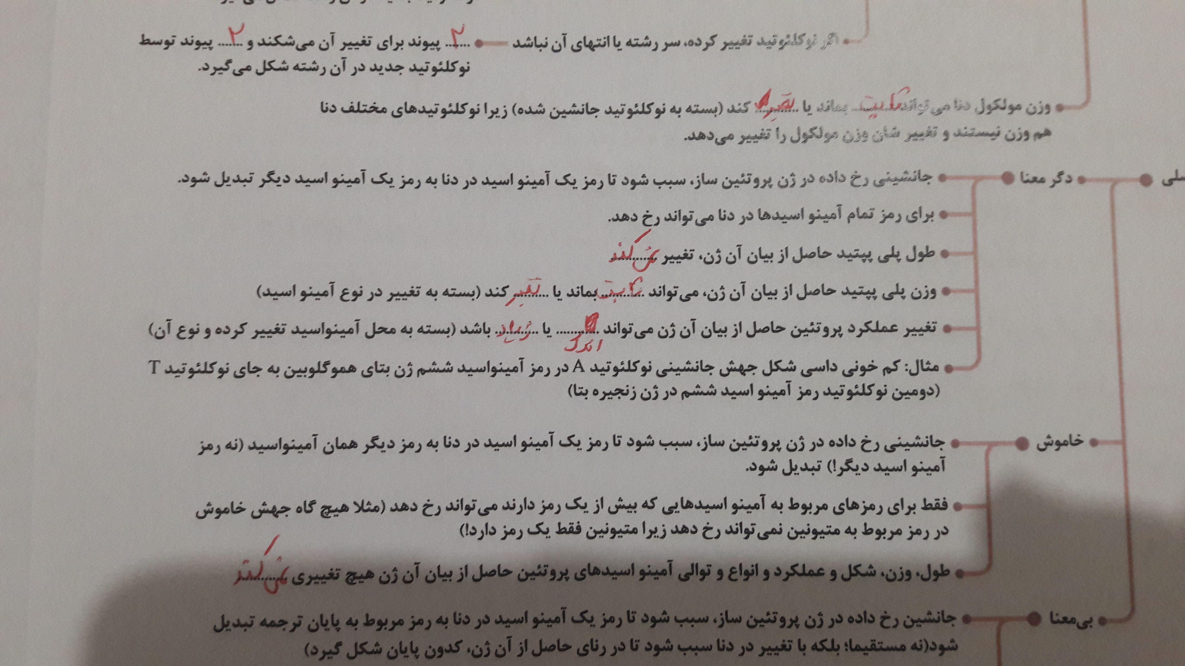 سلام تو قسمت جهش خاموش خط اخرش نوشته وزن طول شکل ......تغییر نمیکند درسته که امینو اسید تعییر نمیکنه ولی ممکنه یه کدون تعییر بکنه و کدون های مختلف که وزن های یکسان ندارند اخه