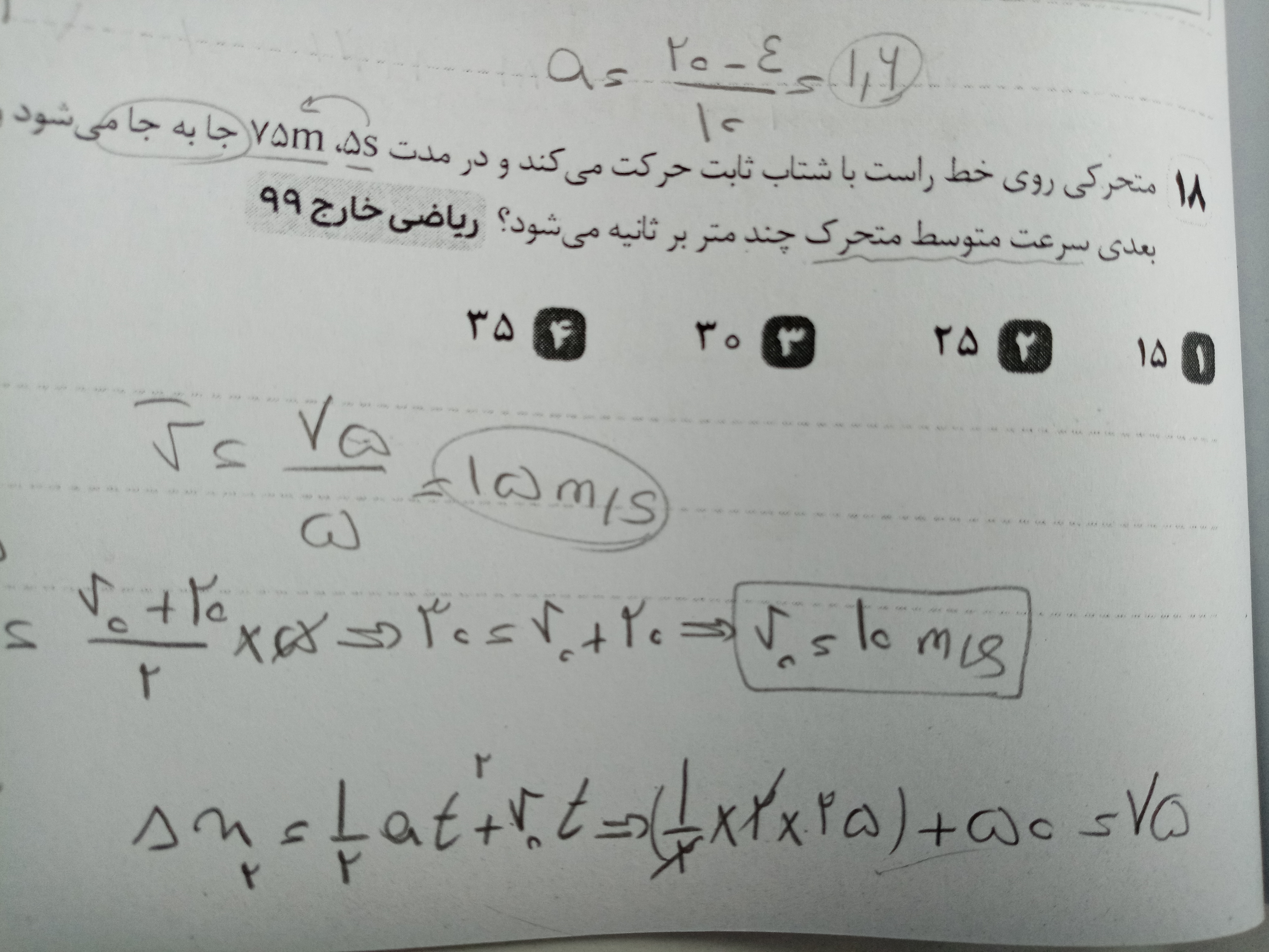 سلام ببخشید مگه سرعت رو ۳۰ بدست نیاوردیم پس چرا دیگه با ۲۰ جمع کردیم و تقسیم به دو کردیم؟