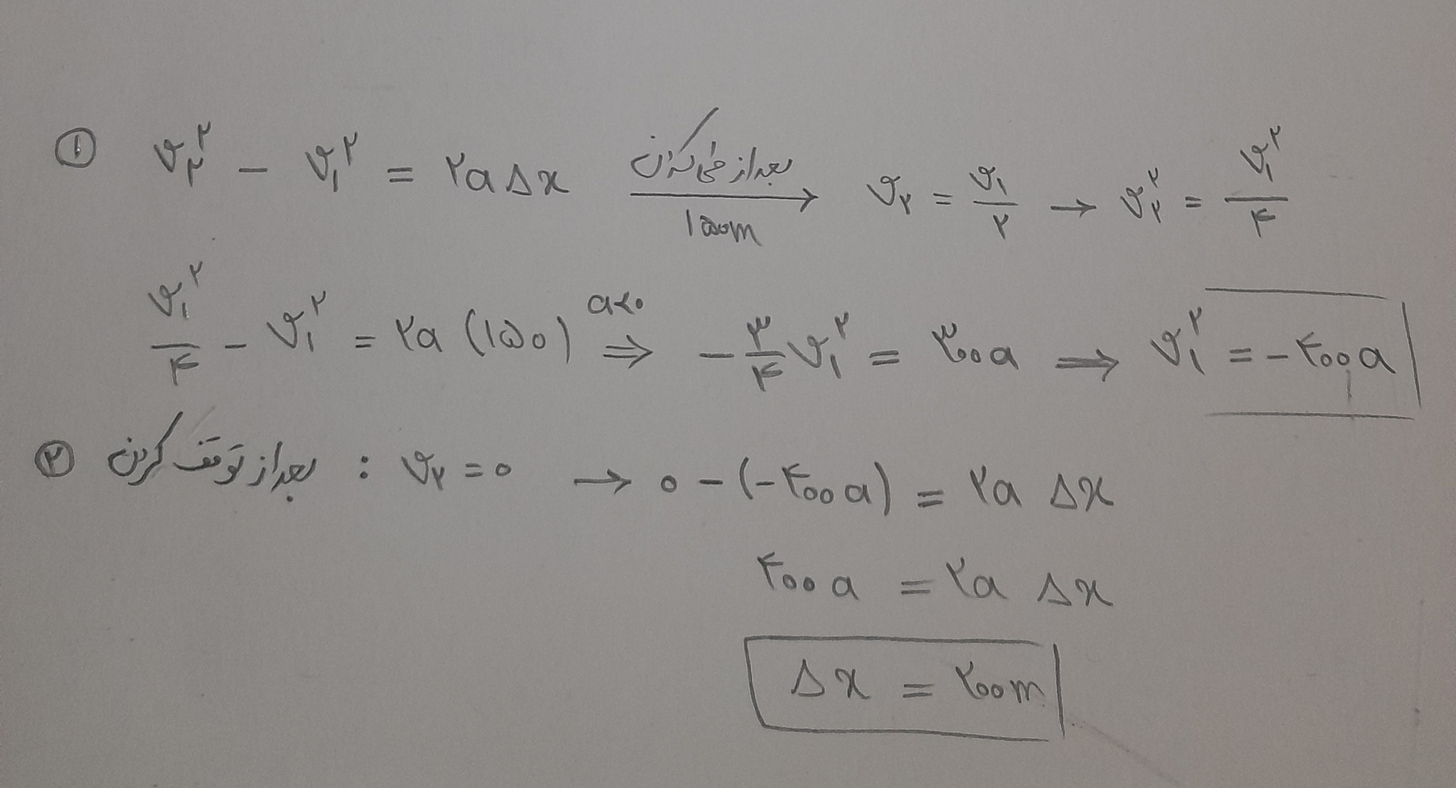 یه سوال مگه نگفته از لحظه ترمز؟؟ ینی جایی که سرعت ۱۰ بود دیگه!!!ینی نباید فاصله ۱۰ تا ۰ رو حساب کنیم؟؟؟باید کل مسیر حساب شه؟