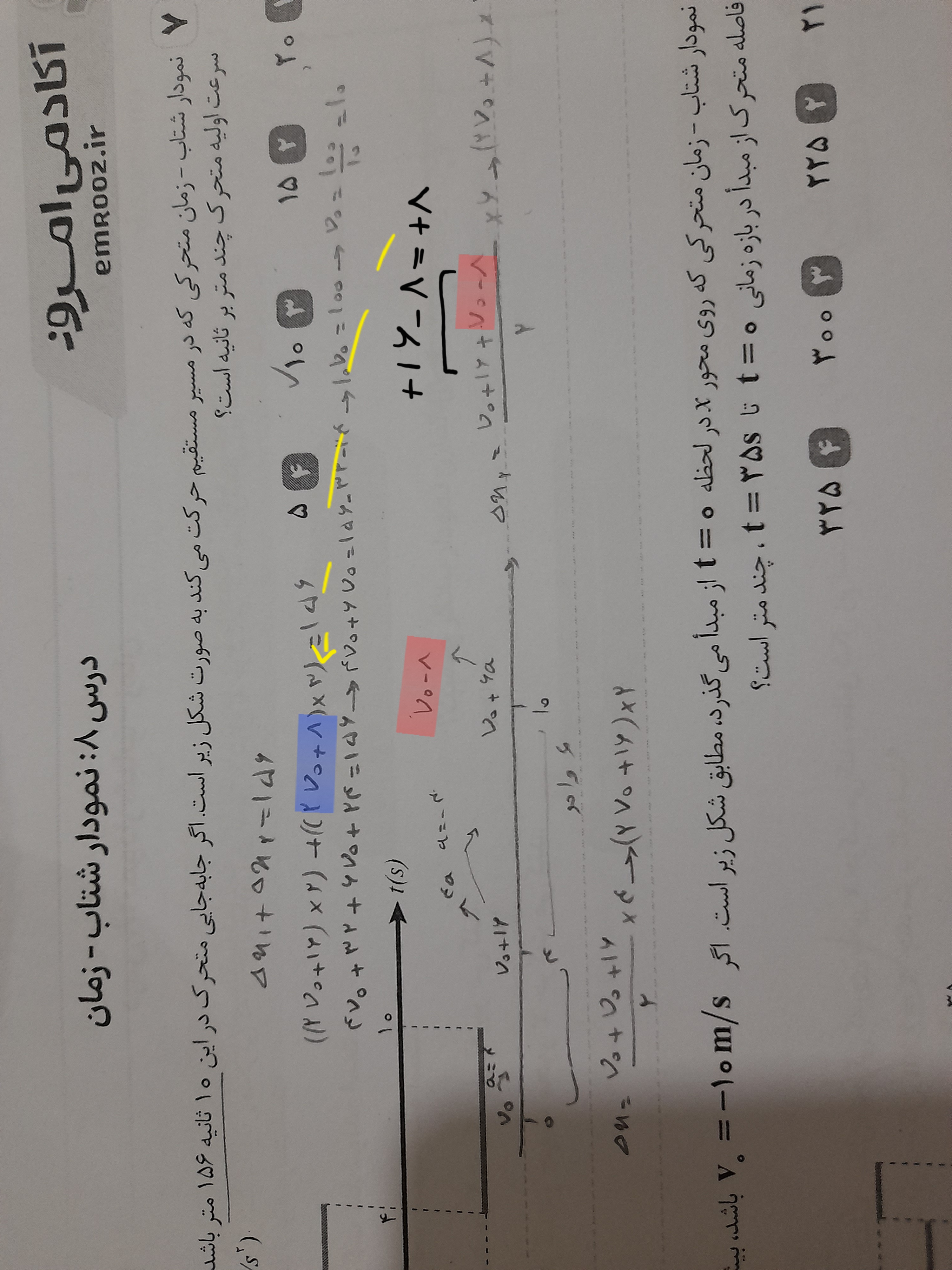 سلام ببخشید سرعت در لحظه 10 v0 -8 نع +8 میشه توضیح بدید چیشد که شد 8+