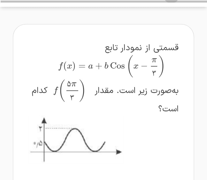 سلام توی این تمرین مگه اورجینال کسینوس نیست ! چون قله ش روی نمودار y پس باید bمثبت باشه کلی منفی گرفته تو جواب