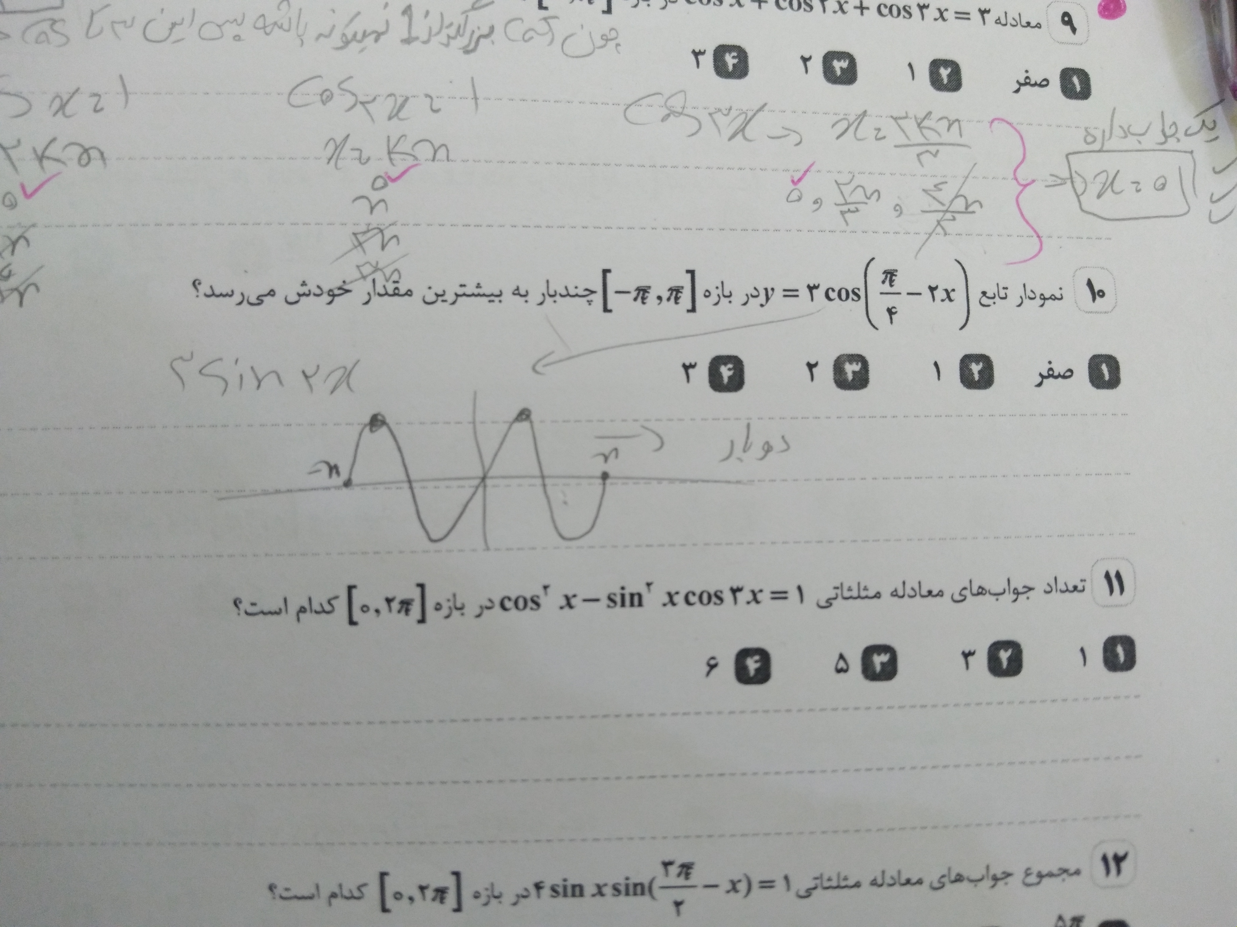 سلام ببینین ساده شده معادله 3sin2x نمیشه ۳cos2x_pi/4 یا 3cos pi/4_2x