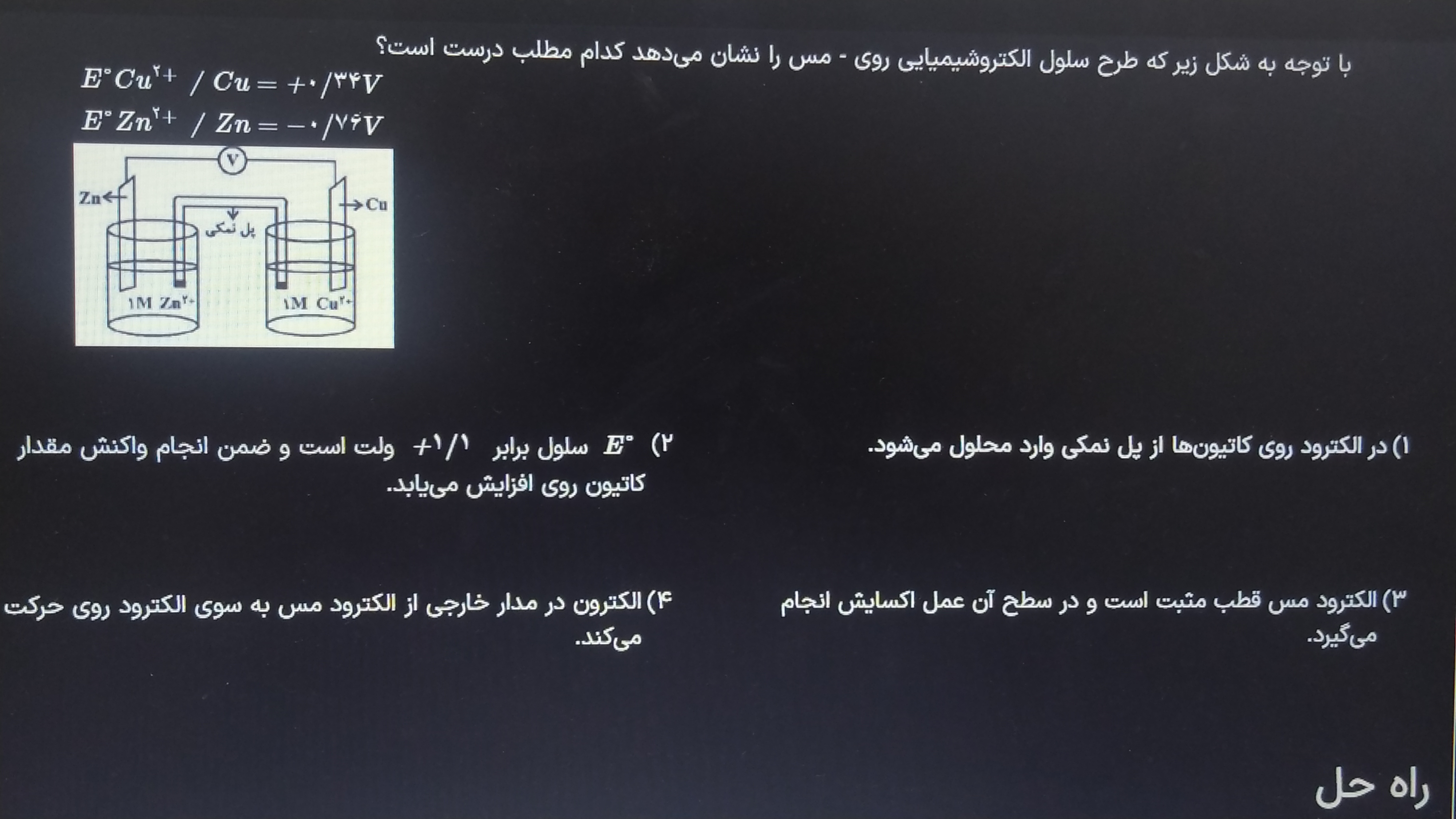 سلام دوست عزیز ببینید به خاطر اینکه پتانسیل کاهشی روی کمتر هست در نتیجه الکترود روی اند محسوب میشه پس انیون ها به سمت اون میرن نه کاتیون ها
