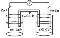 با توجه به شکل زیر که طرح سلول الکتروشیمیایی روی - مس را نشان می