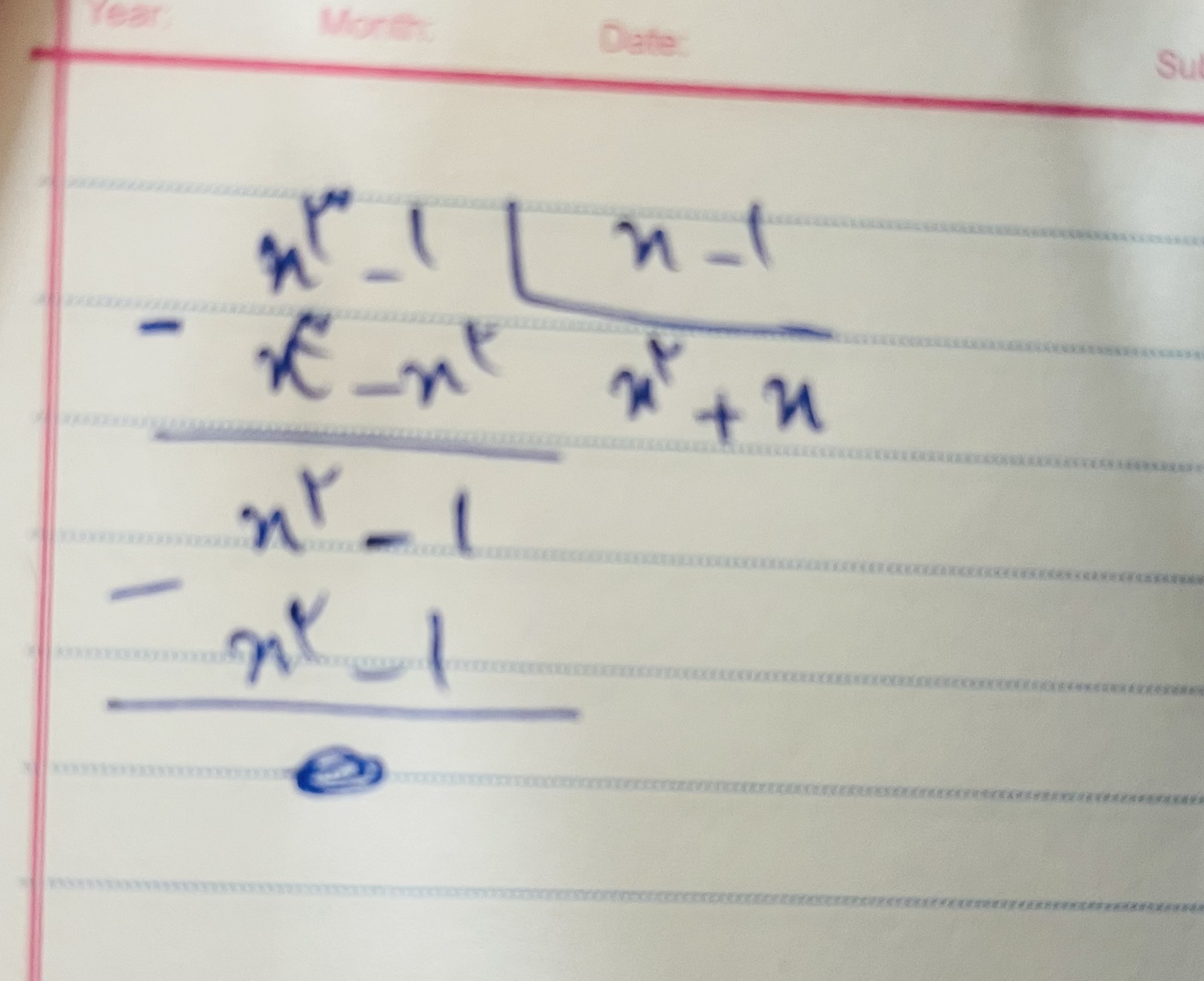 @فاطمه صفری سلام حلش رو براتون میفرستم اول باید بفهمین چیو تو اولین قسمت مقسوم علیه ضرب کنیم که اولین قسمت مقسوم به دست بیاد میفهمیم که اگر x به توان دو رو توی مقسوم علیه خرج کنین x به توان سه به دست میاد که توی مقسوم هست و به ترتیب با همین‌روش پیش میریم