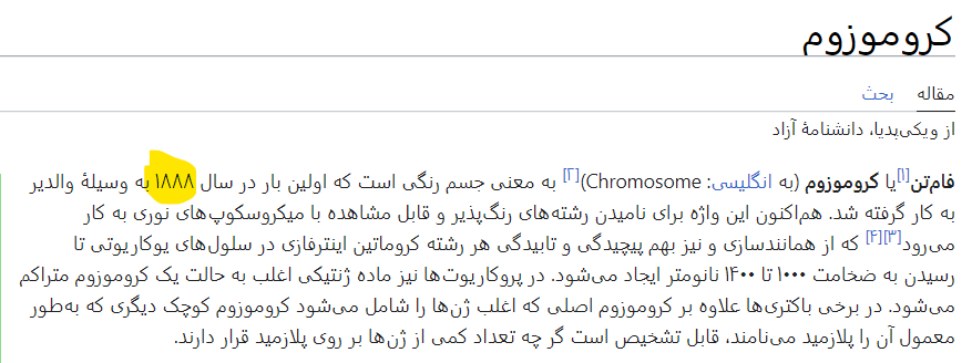 مگه در فصل یک گفته نشد قبل ایوری نوکلئیک اسید کشف شده بوده..؟ کشف ایوری در سال1944 بوده...پس قبل 1944کروموزوم دنا کشف شدن...حالا اینکه قبل1900یا یا بین 1900-1944 رو باید سرچ کرد..