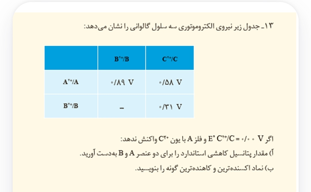 یادبگیریم10:چند مسئله برای سلول های گالوانی