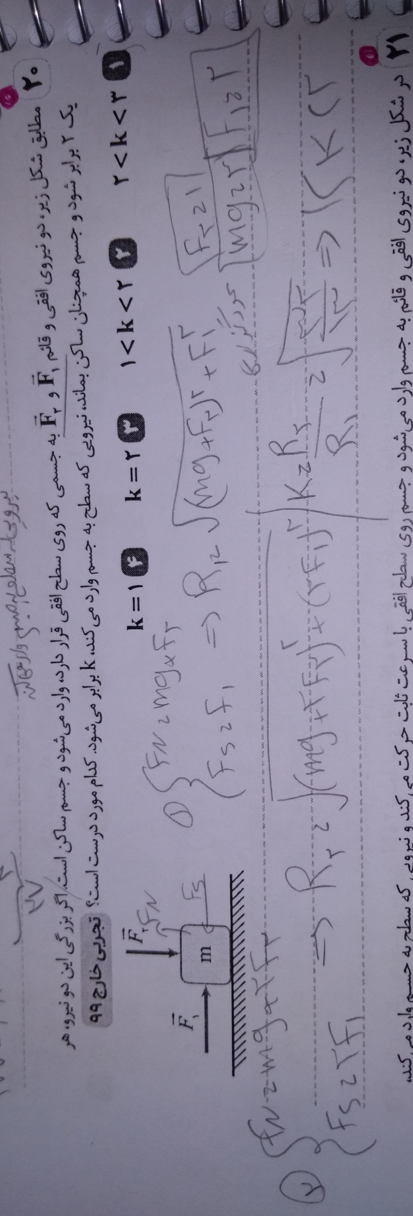 سلام من مستقیم اف کا و اف ان رو دو برابر کردم...با این تحلیل ک وقتی اف2 2برابر میشه اف کا هم 2برابر میشه و بردم زیر رادیکال....و ی عدد دلخواه دادم و تقسیم کردم شد گزینه2 ولی چک نکردم ببینم ایا اف اس ماکزیمم هنوز بزرگتر از اف میشه یا نه....سوالم اینه ک خیلیی مهم و واجبه ک عددایی ک دلخواه میزاریم چک بشن تا مطمئن شیم ساکن میمونه؟