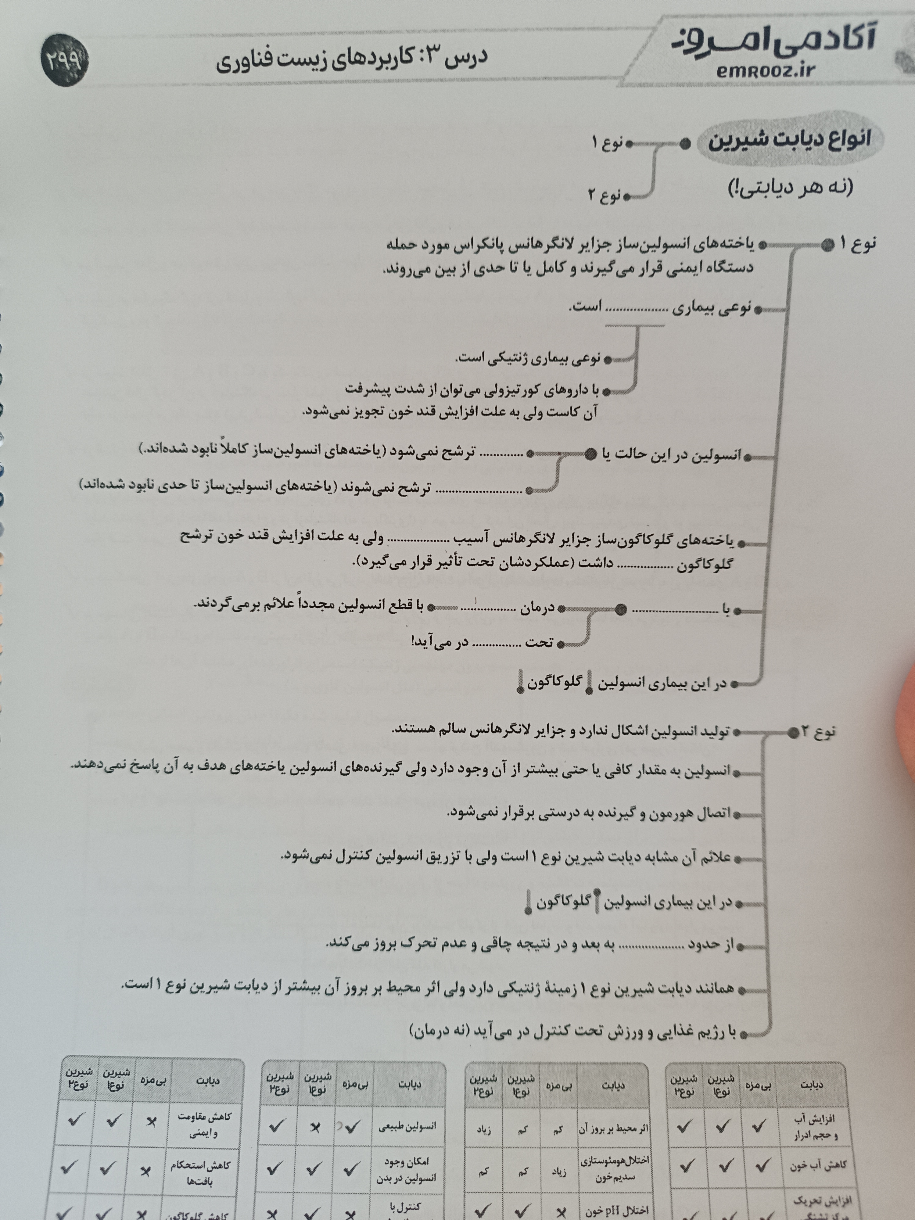 سلام فصل چهار سال یازدهم قسمت دیابت فیلمش هست برو ببین و جای خالی ها را پر کن