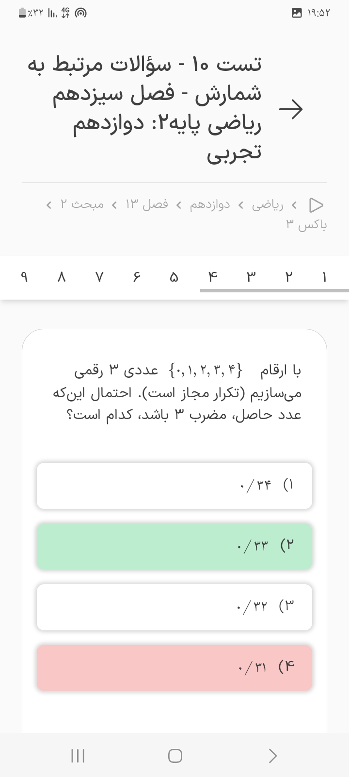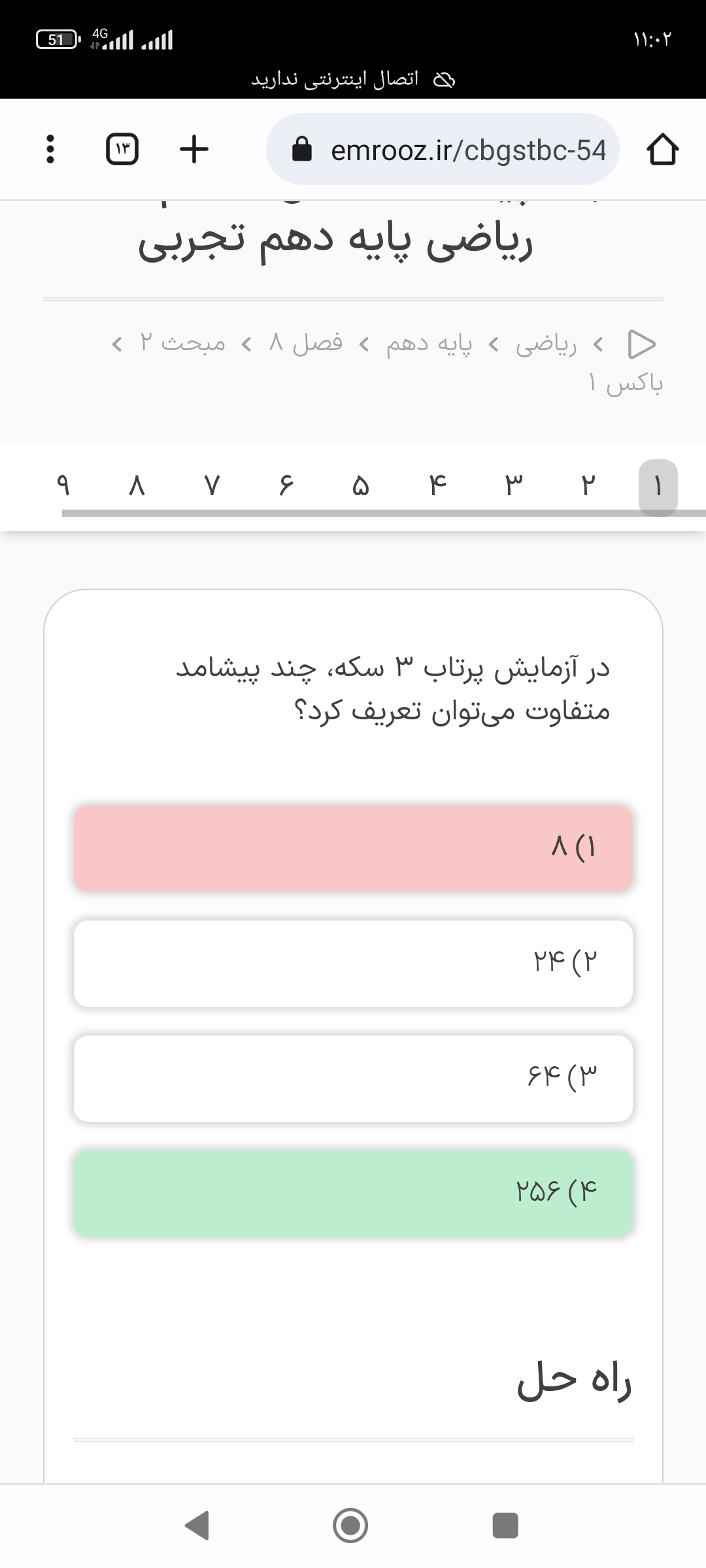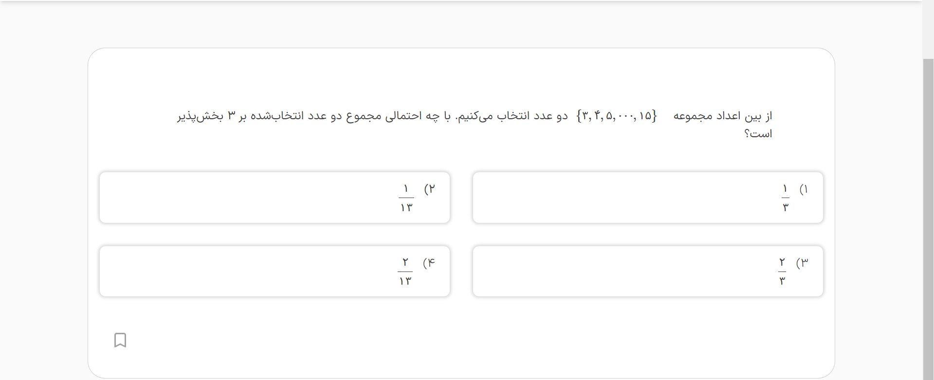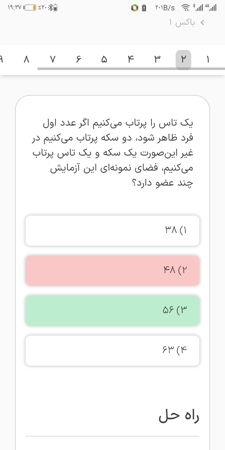 سلام پیشامد اینکه تو تاس عدد انتخابی مضرب ۳باشه مگه نمیشه دو به توان سه که همون هشته ؟