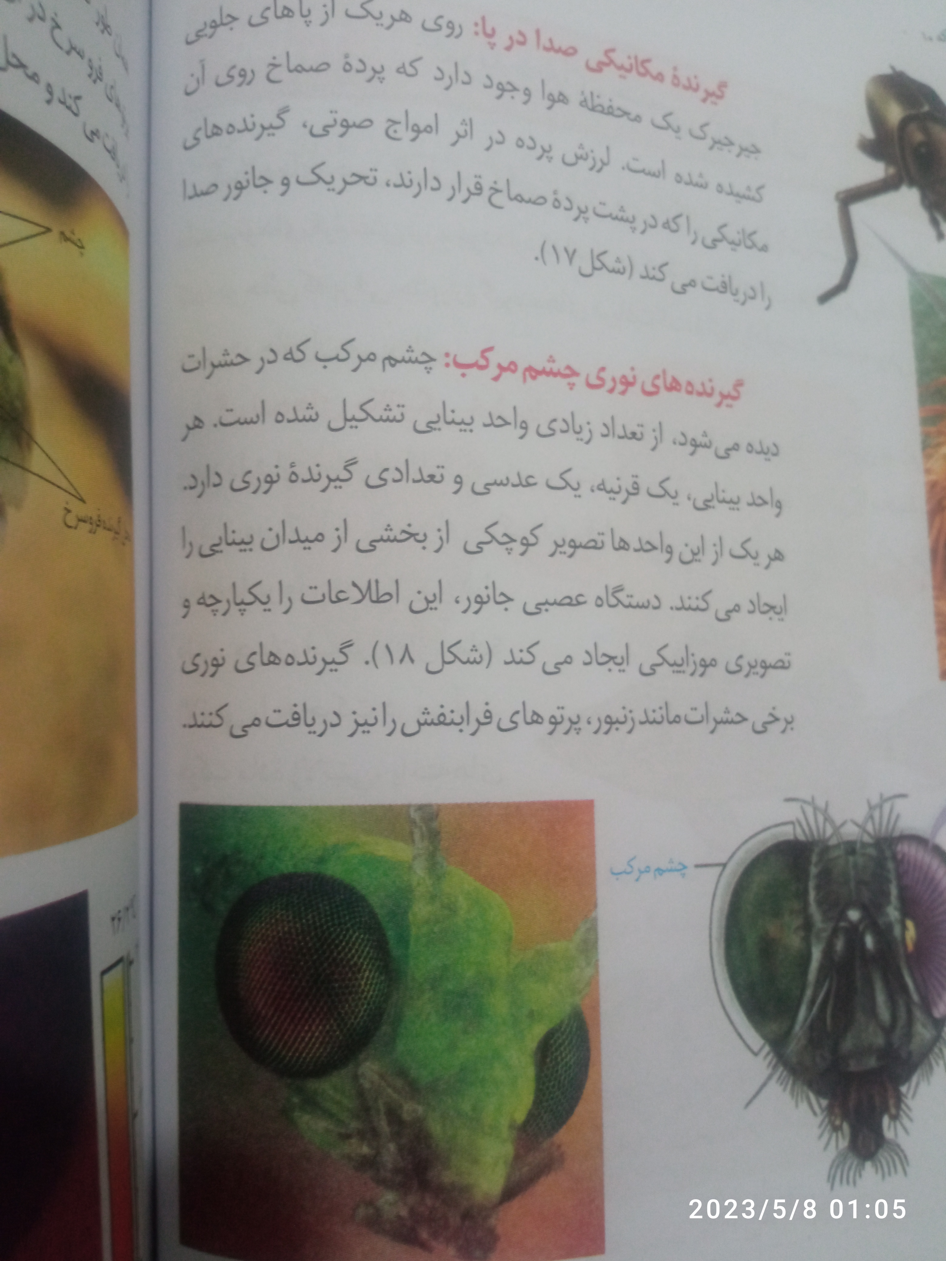 سلام وقتت بخیر باشه مورد ج هم گفته با استفاده از گیرنده های نوری میتونه پرتوهای فرابنفش رو ببینه مثلا انسان با گیرنده های نوریش میتونه مرئی رو ببینه این قسمت کتاب هم توضیح داره ک زنبور میتونه با استفاده از گیرنده هاش پرتوهای فرابنفش را نیز دریافت کند