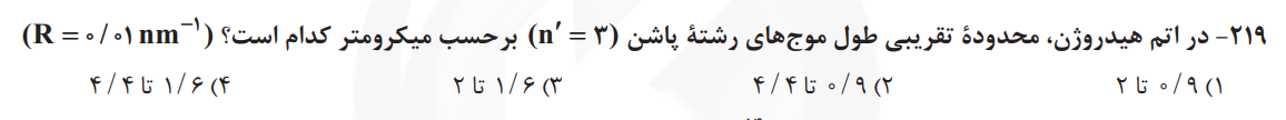 مسائل الگوهای اتمی و طیف اتمی هیدروژن، تست ها (بخش اول)