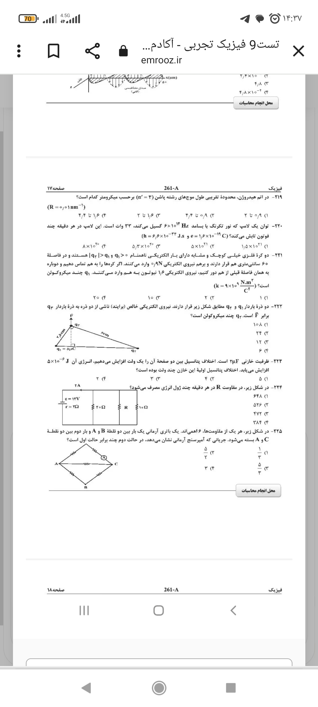 این سوال جرا انقد اشتباه تایپی داره سوال کنکورش اینه ، کلا اینجا همه اطلاعات سوال رو غلط نوشتین ، رسیدگی کنید دیگه تو جزوه فیزیک پر شده از اشتباهات تایپی سوال ۲۱۹ کنکور بوده ولی شما چی تایپی کردین 🤦‍♂️
