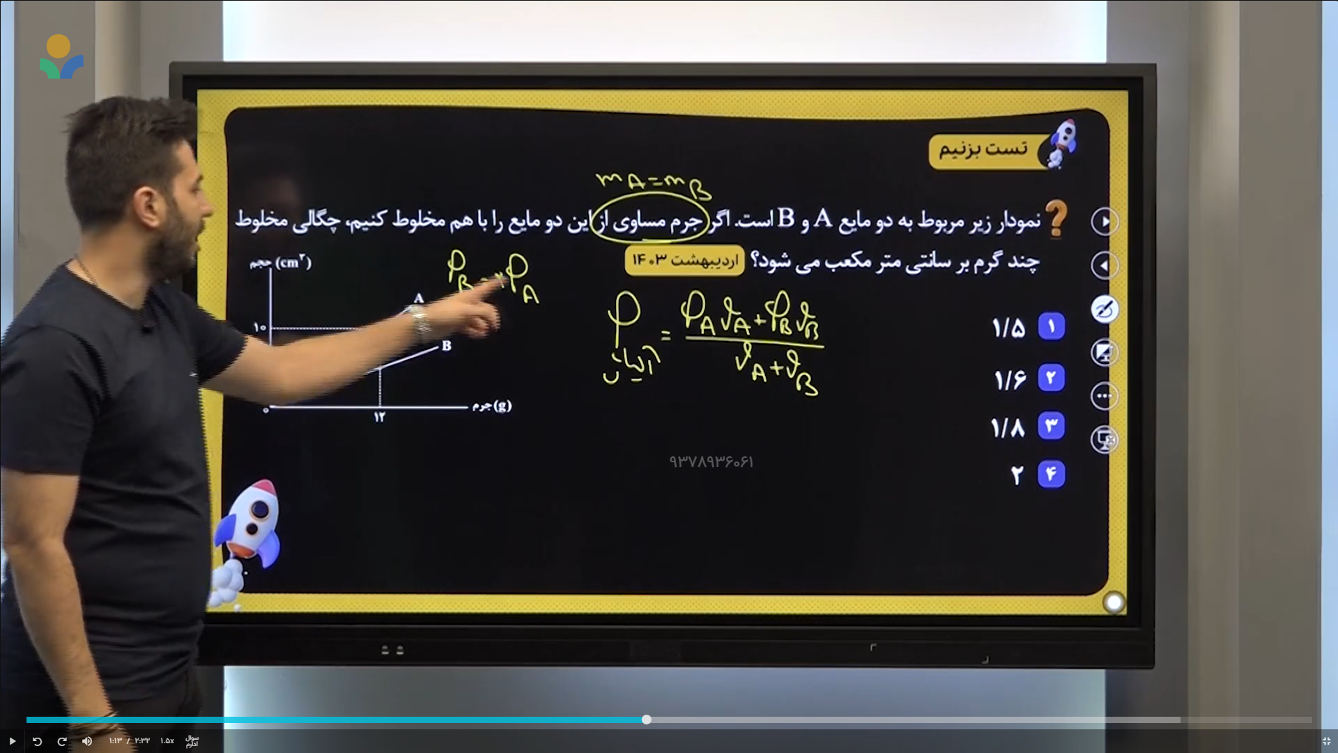 تست مربوط به مبحث چگالی و مربوط به همین مبحث هست و در مورد لاغری استاد هم اطلاعی ندارم واقعیتش 😅 شاید رژیم گرفتن 🌷